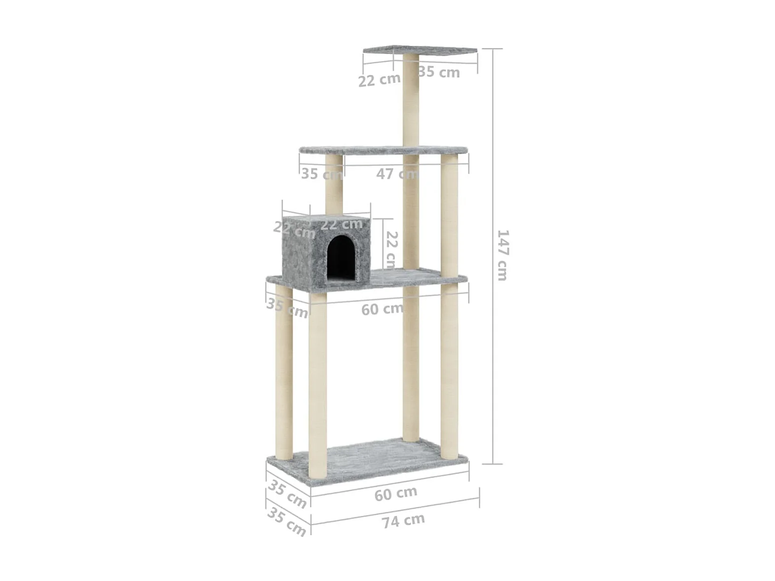 Arbre à chat avec griffoirs en sisal Gris clair 147 cm