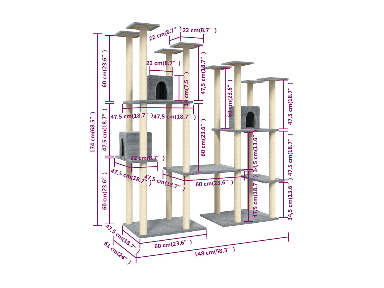 Arbre à chat avec griffoirs en sisal Gris clair 174 cm