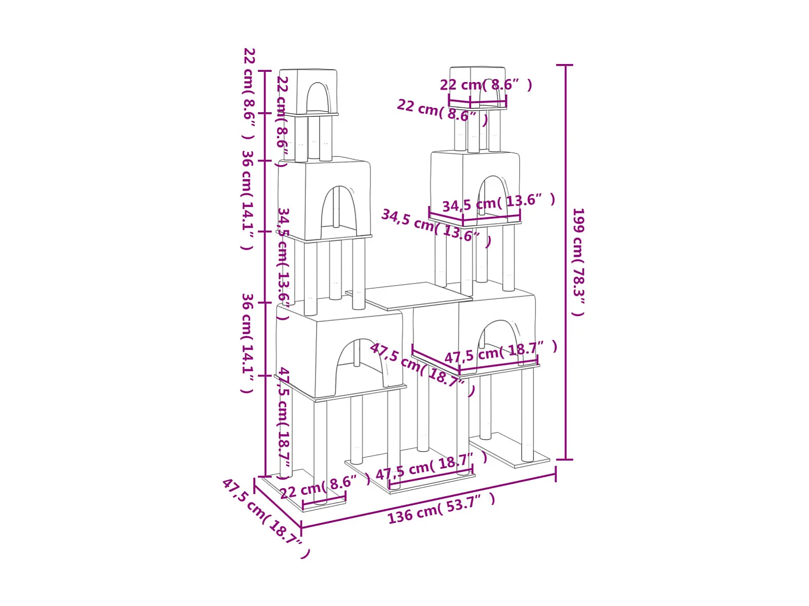 Arbre à chat avec griffoirs en sisal Gris clair 199 cm