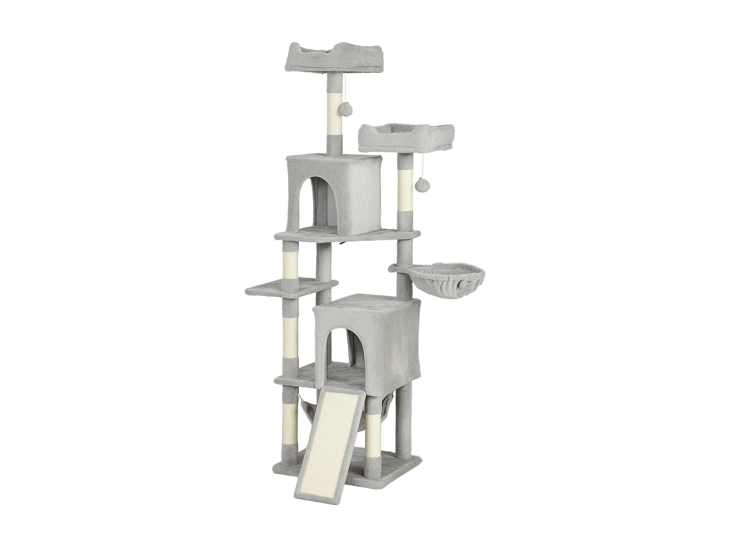 Arbre à chat multi-équipement griffoirs plateformes niche échelle hamac jouets gris