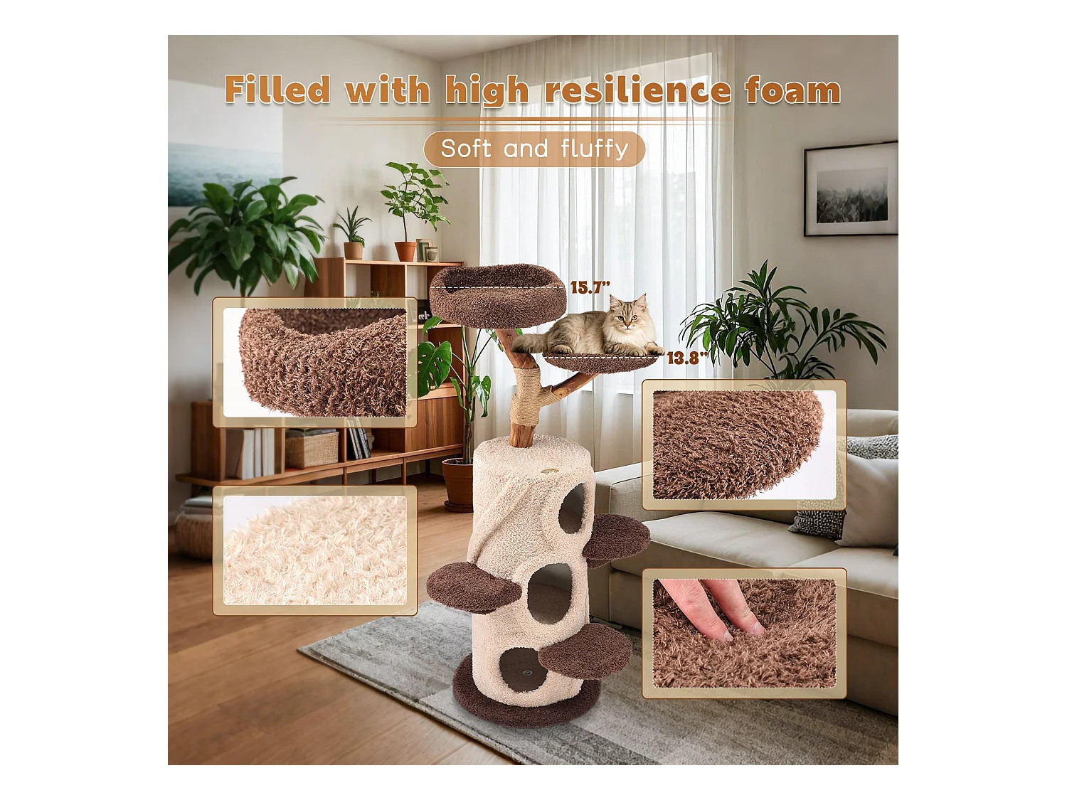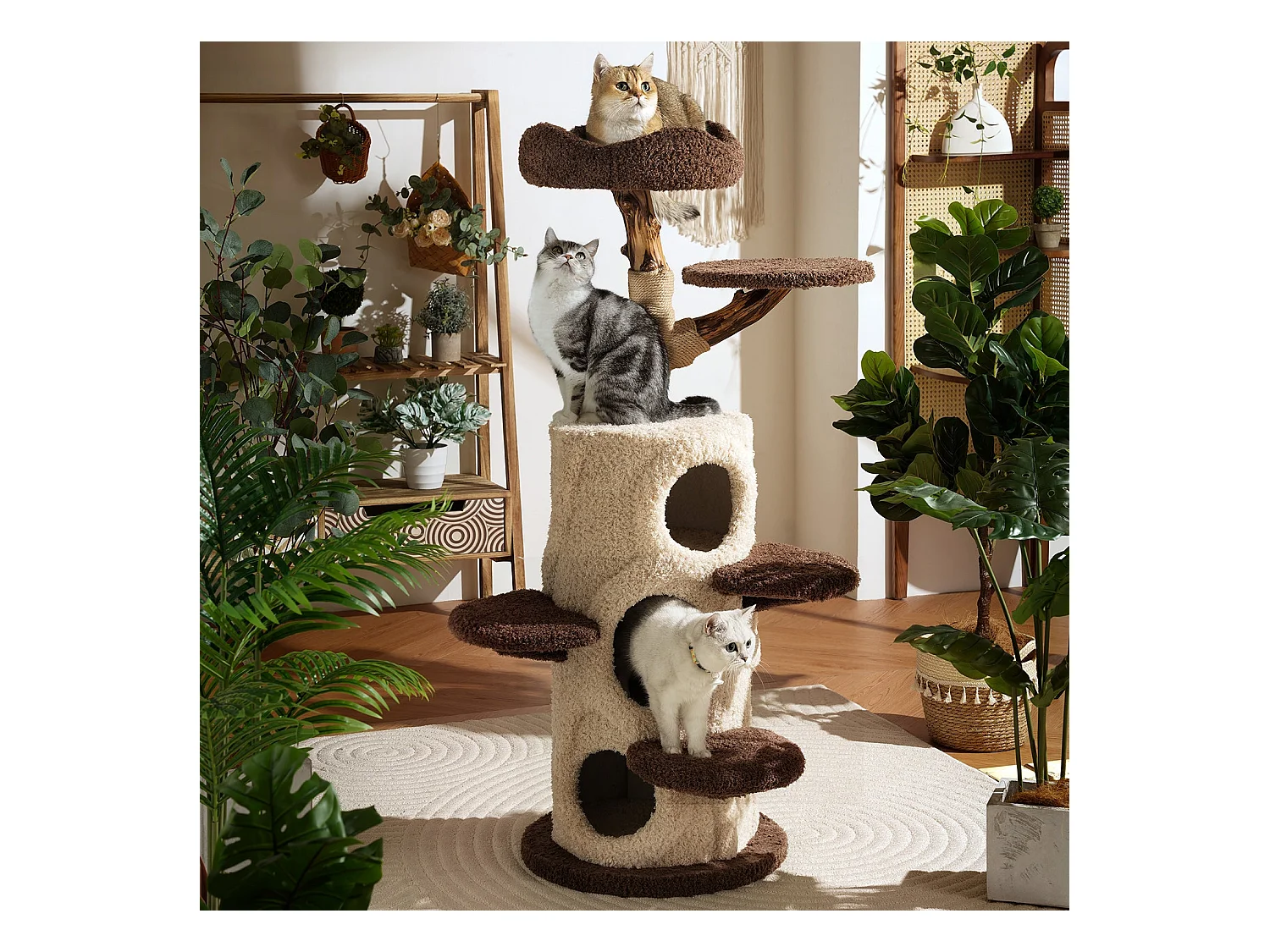Arbre à chat en bois massif, d48cm×h140cm, marron