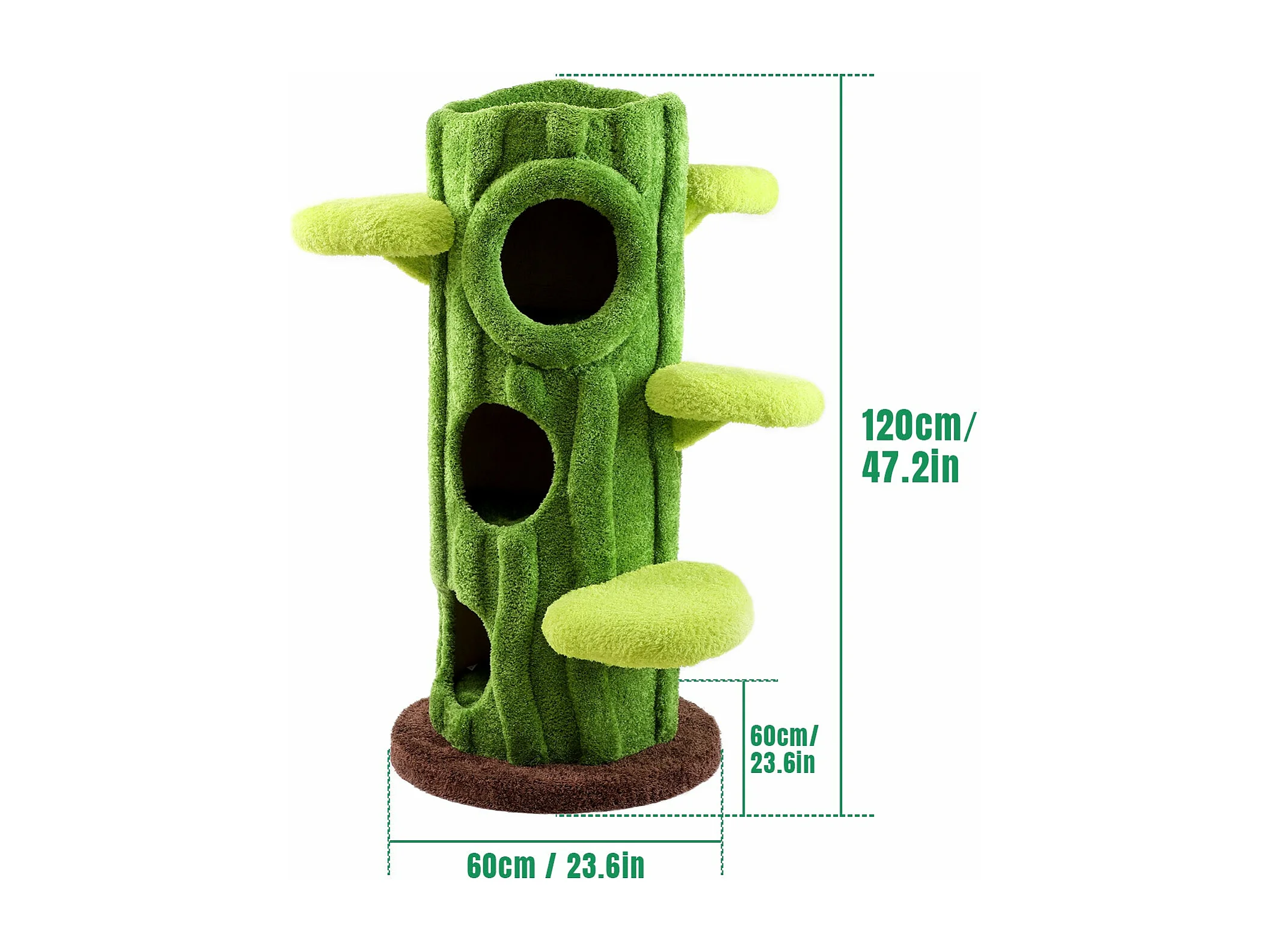 Arbre à chat en bois massif, d60cm×h120cm, vert