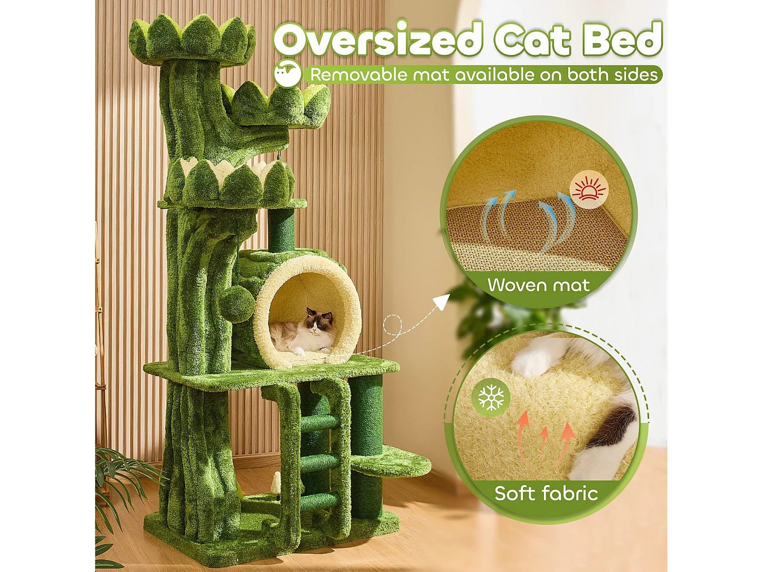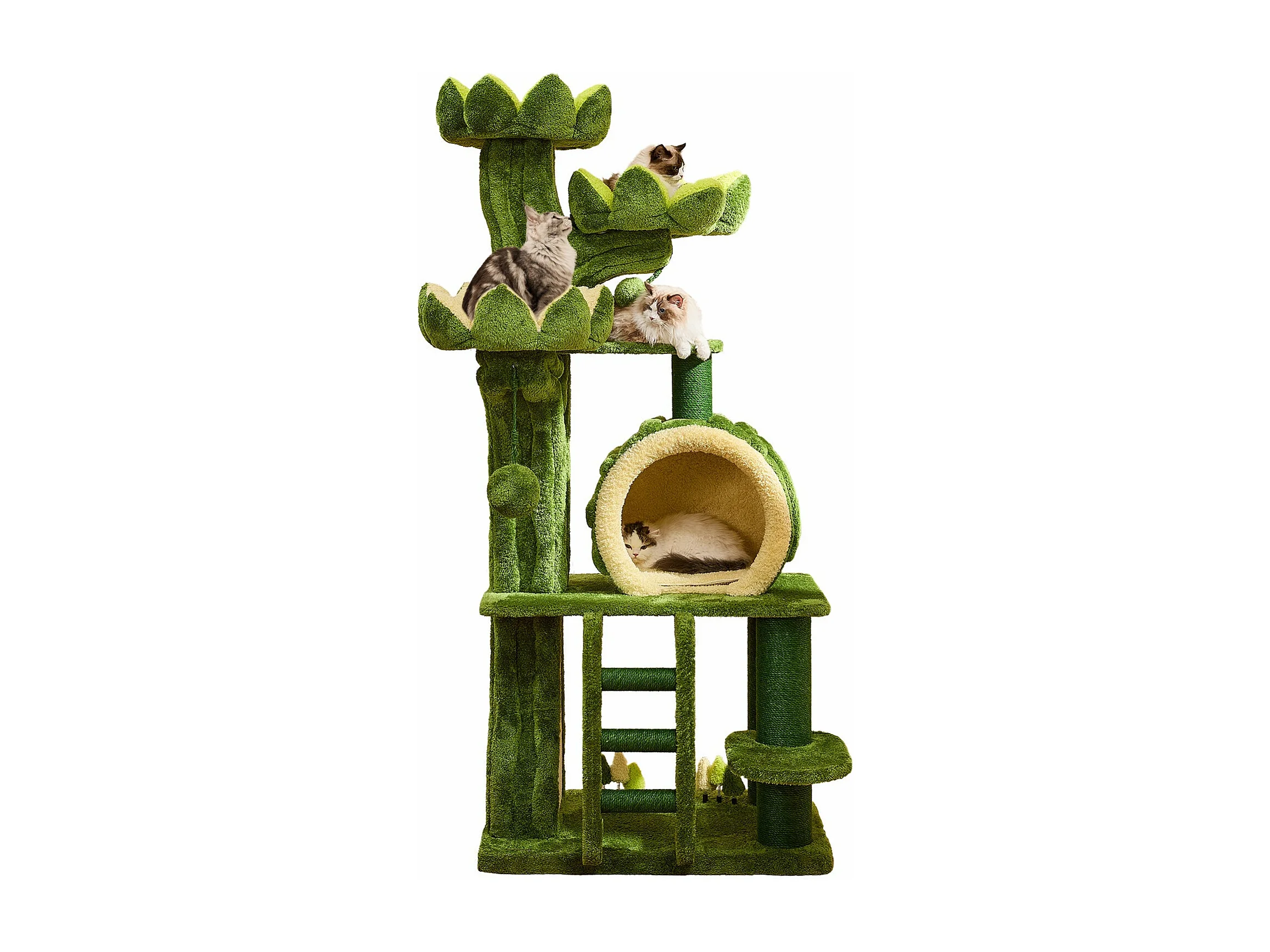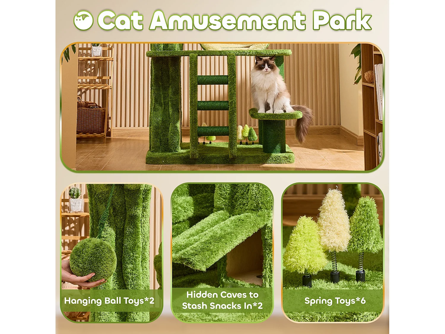 Arbre à chat en bois massif, d89.9cm×h205.9cm, vert