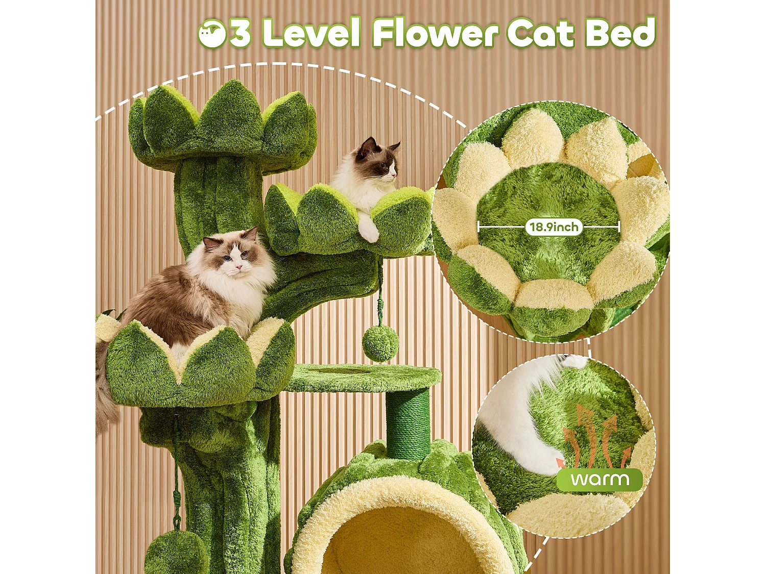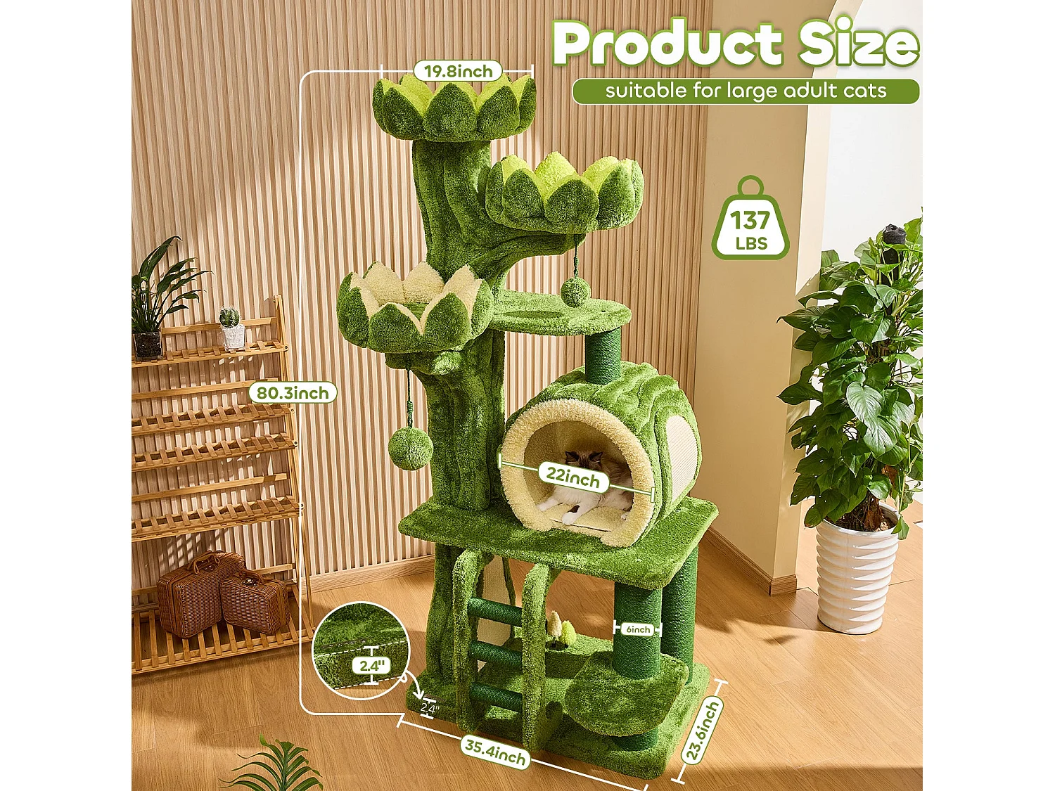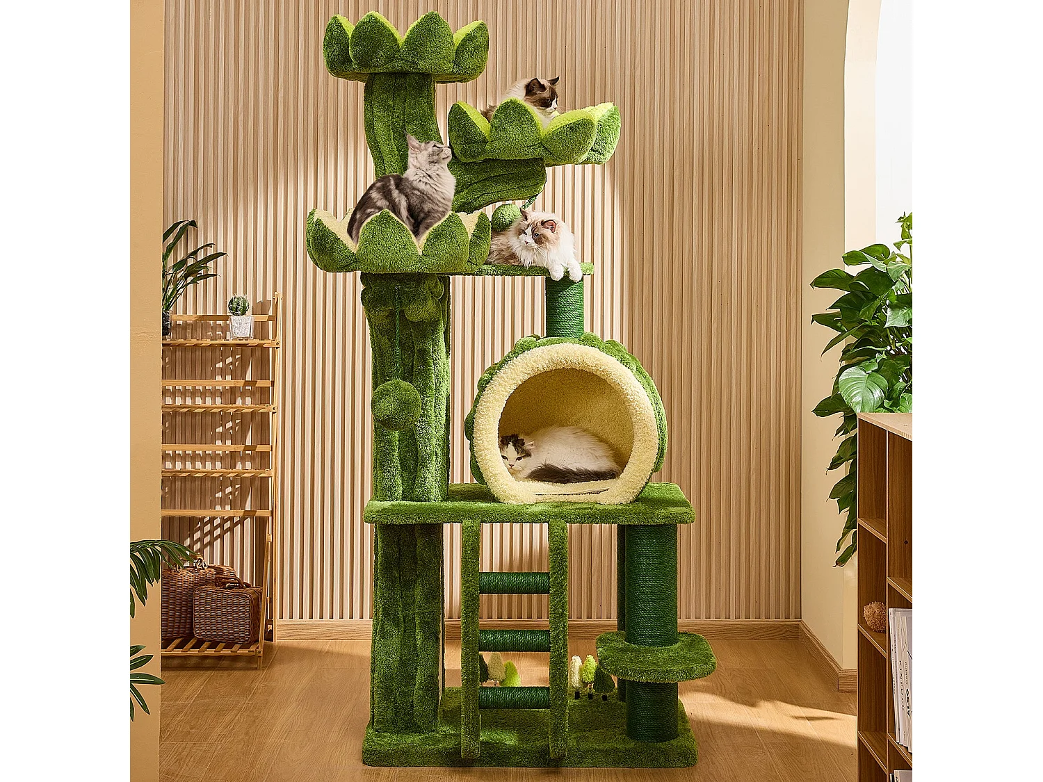 Arbre à chat en bois massif, d89.9cm×h205.9cm, vert