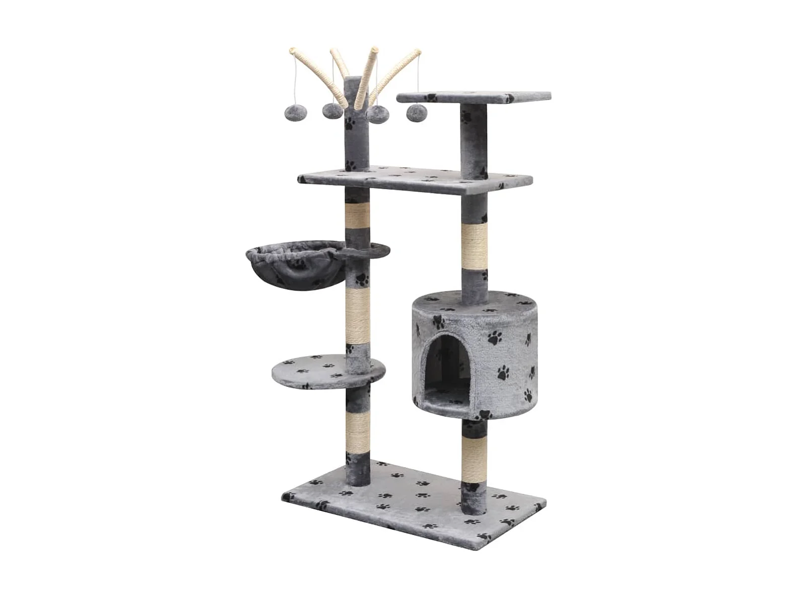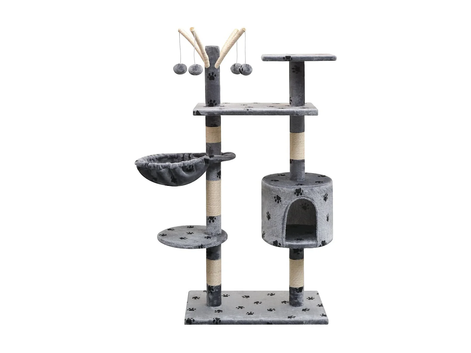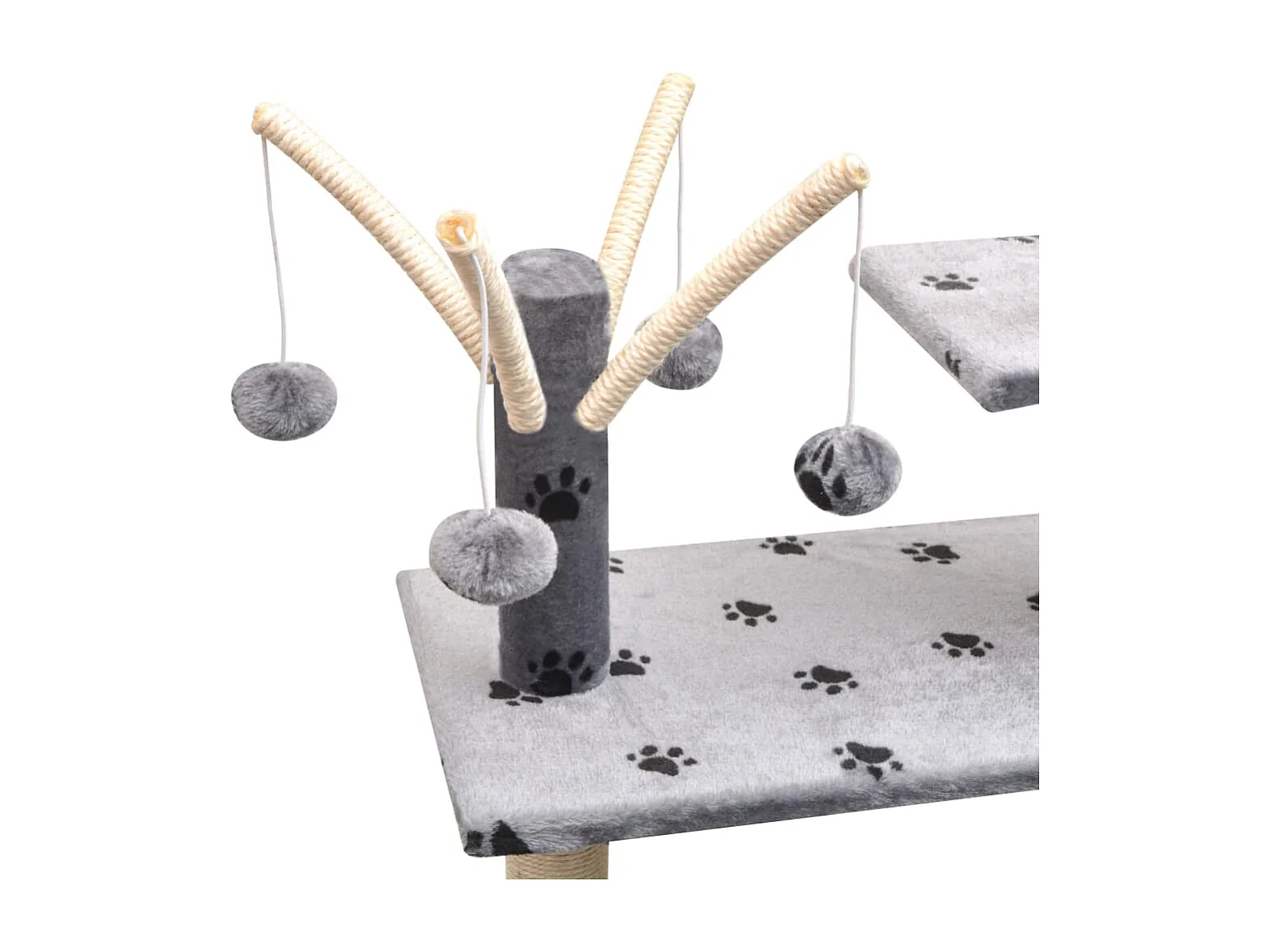 Arbre à chat et griffoir Sisal 125 cm Empreintes de pattes Gris