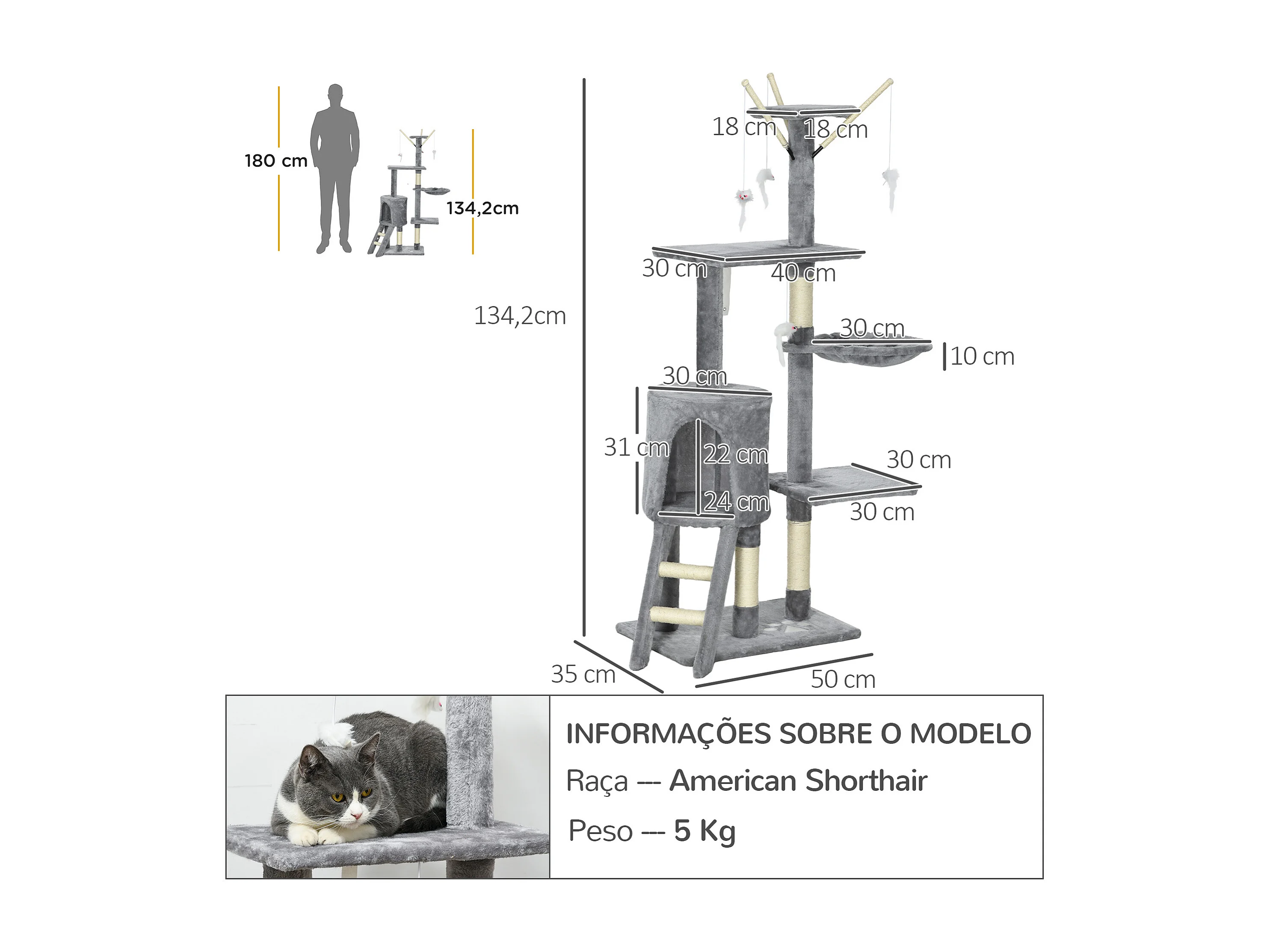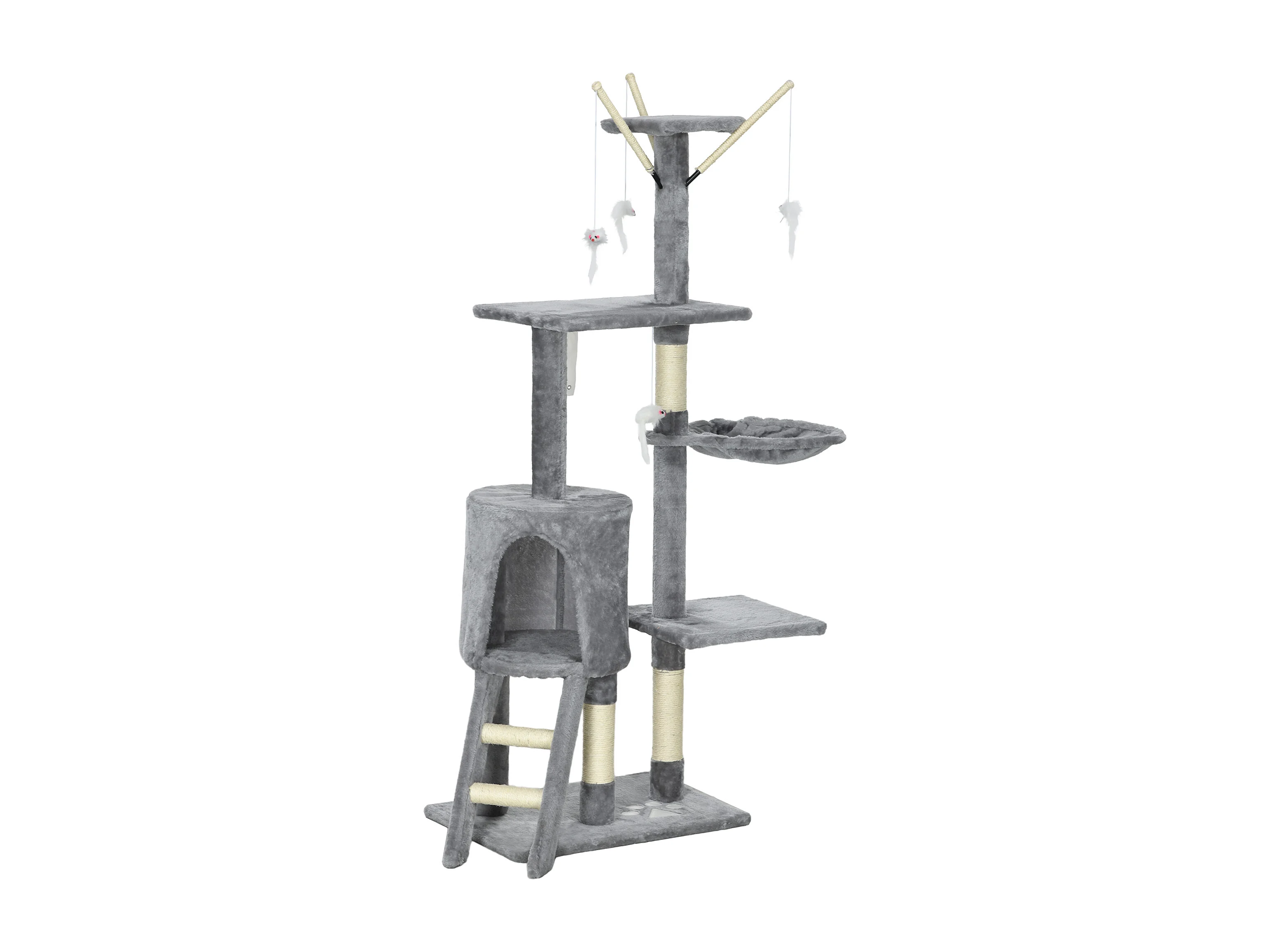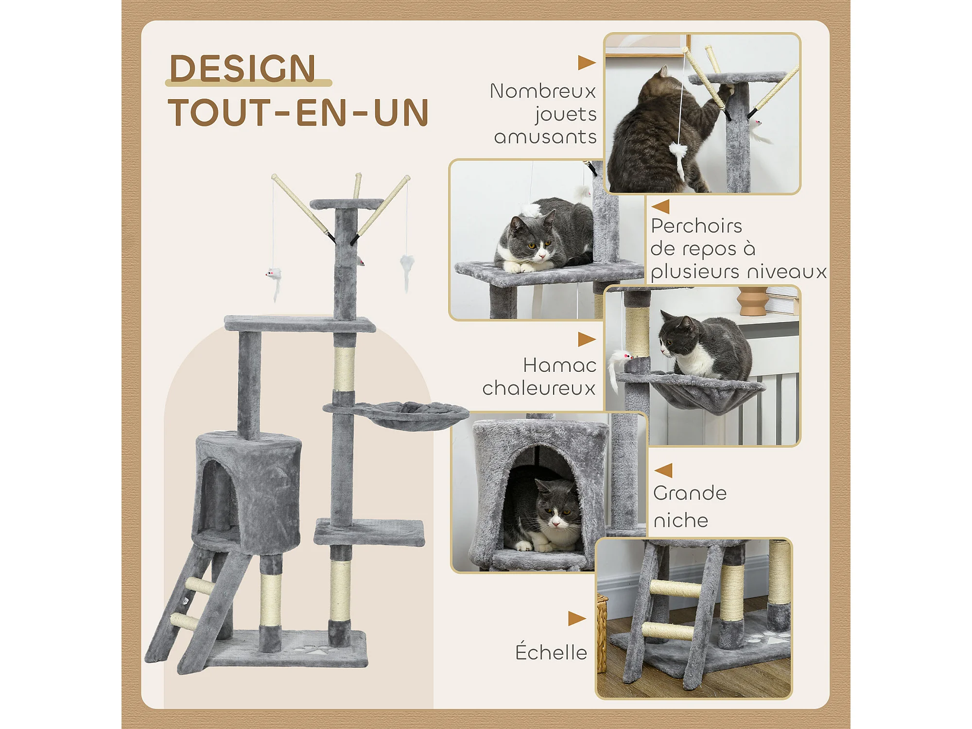 Arbre à chat multi-équipement griffoirs plateformes niche échelle hamac jouets gris