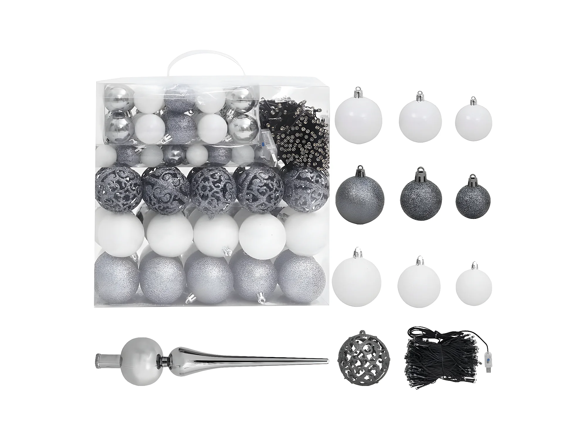 Arbre de No?l artificiel pré-éclairé et boules bleu 210 cm PVC