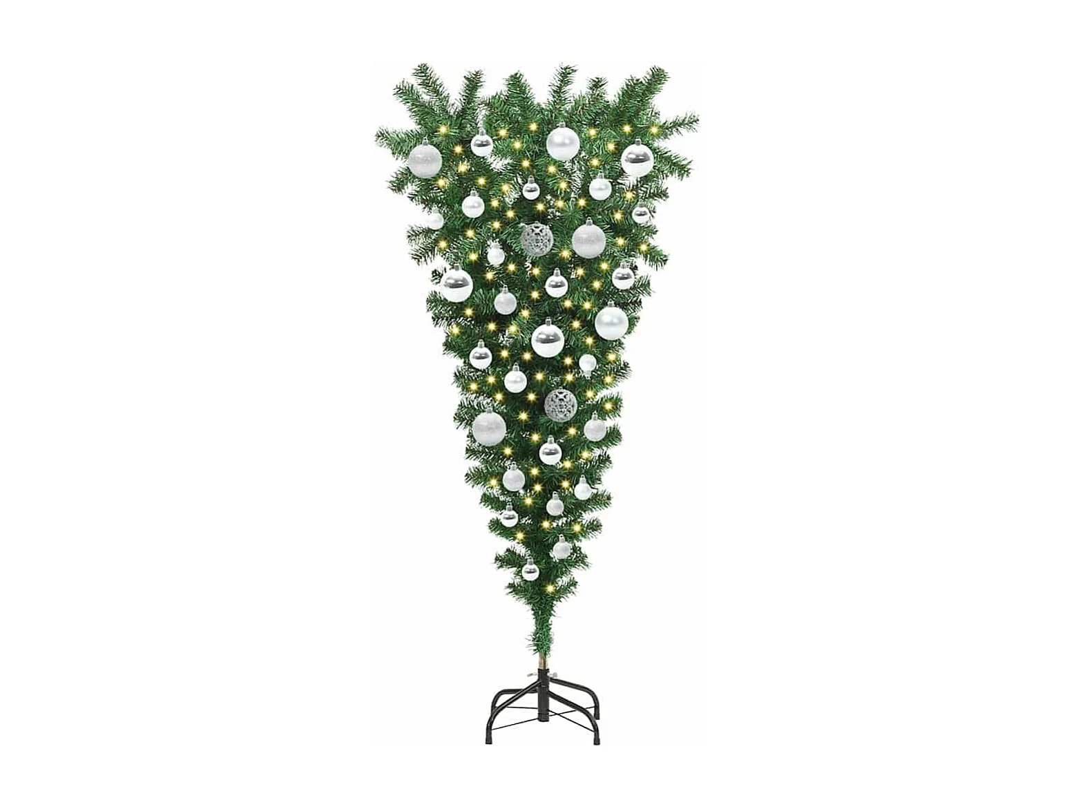 Sapins de Noël pré-éclairés en version inversée avec jeu de boules