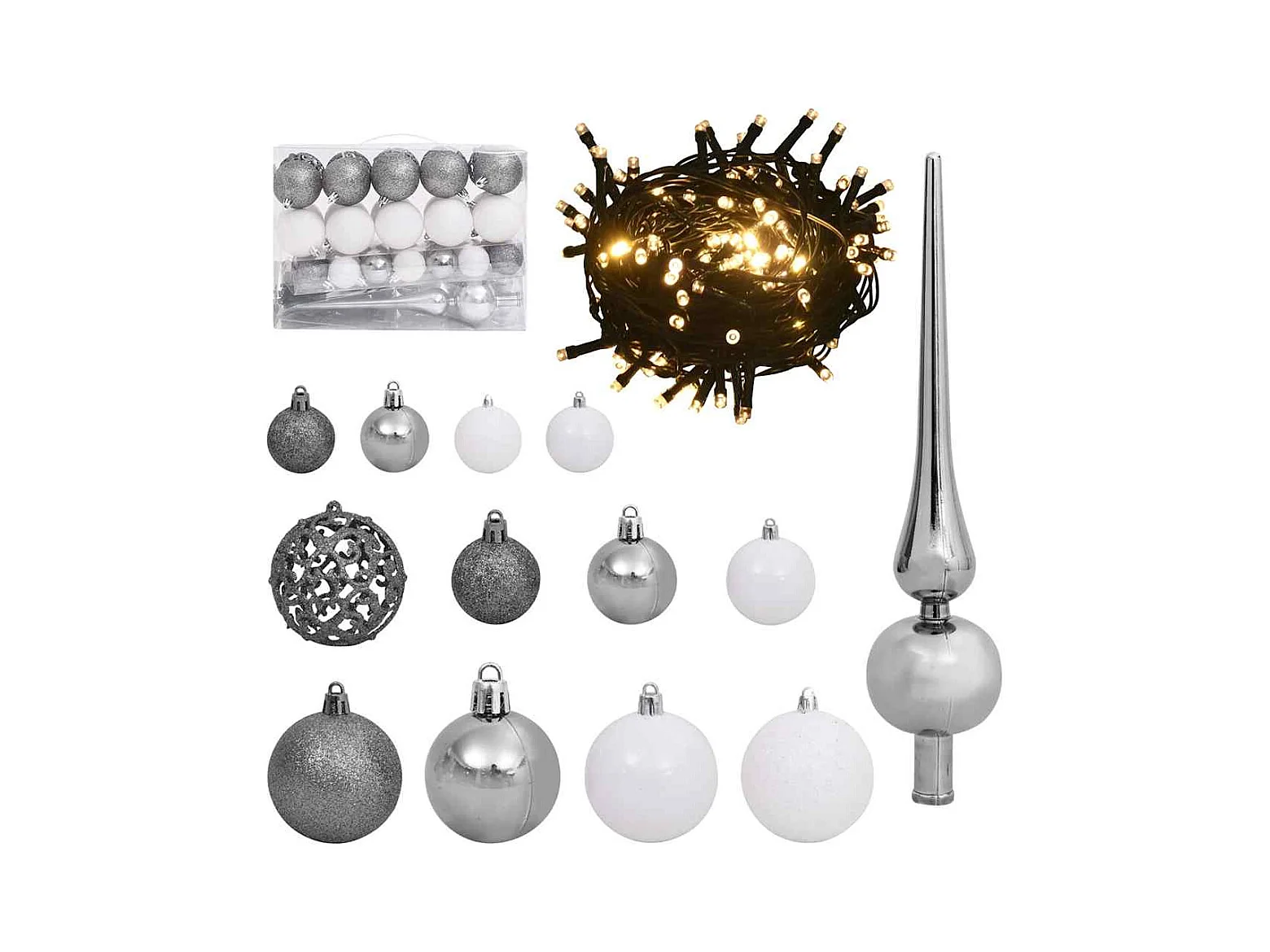 Arbre de Noël artificiel pré-éclairé et boules blanc 120 cm PVC