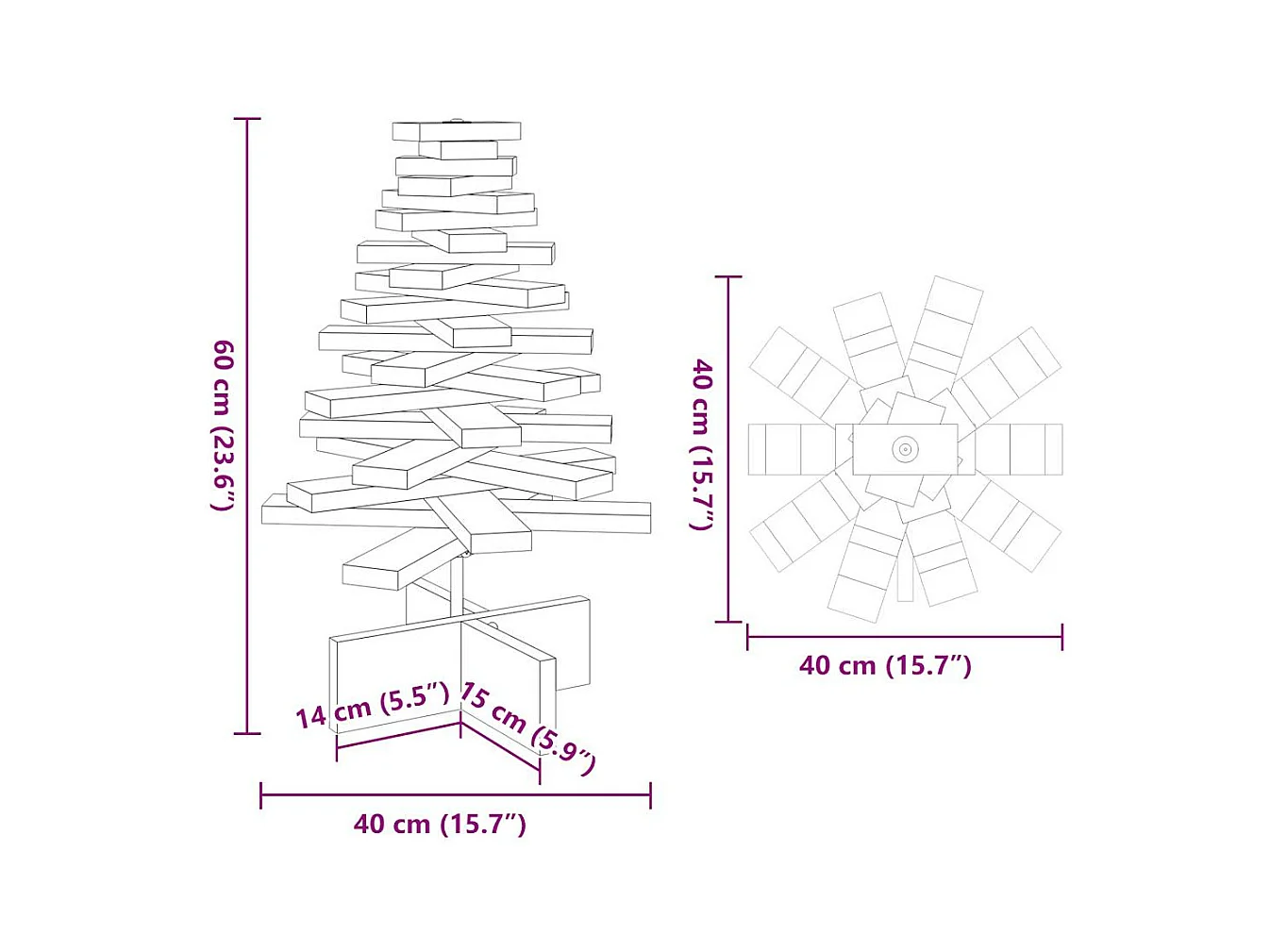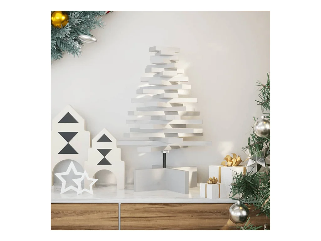 Arbre de Noël en bois pour décoration blanc 60 cm pin massif