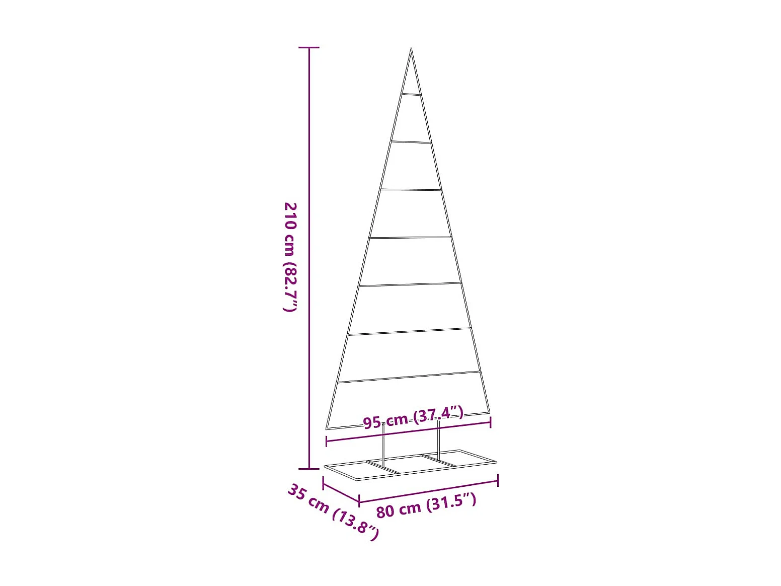 Arbre de Noël en métal avec base en bois noir 210 cm