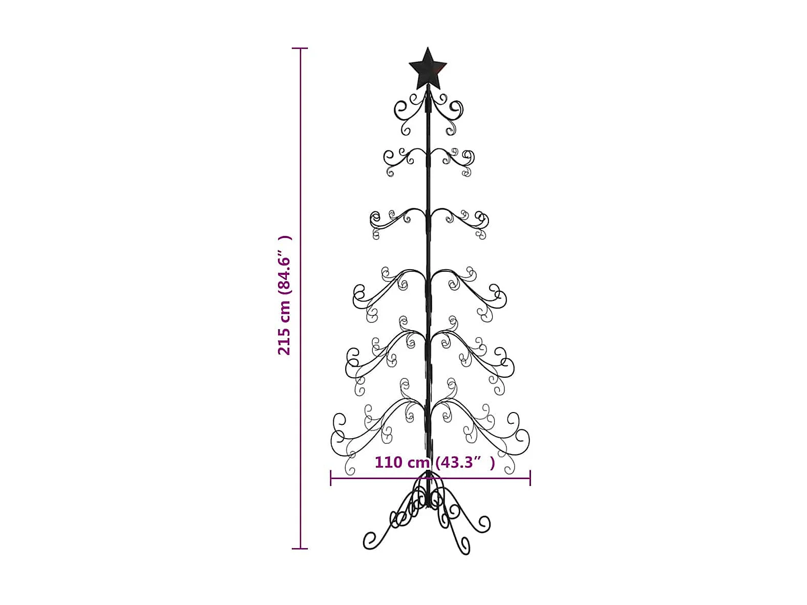 Arbre de Noël en métal pour décoration noir 215 cm