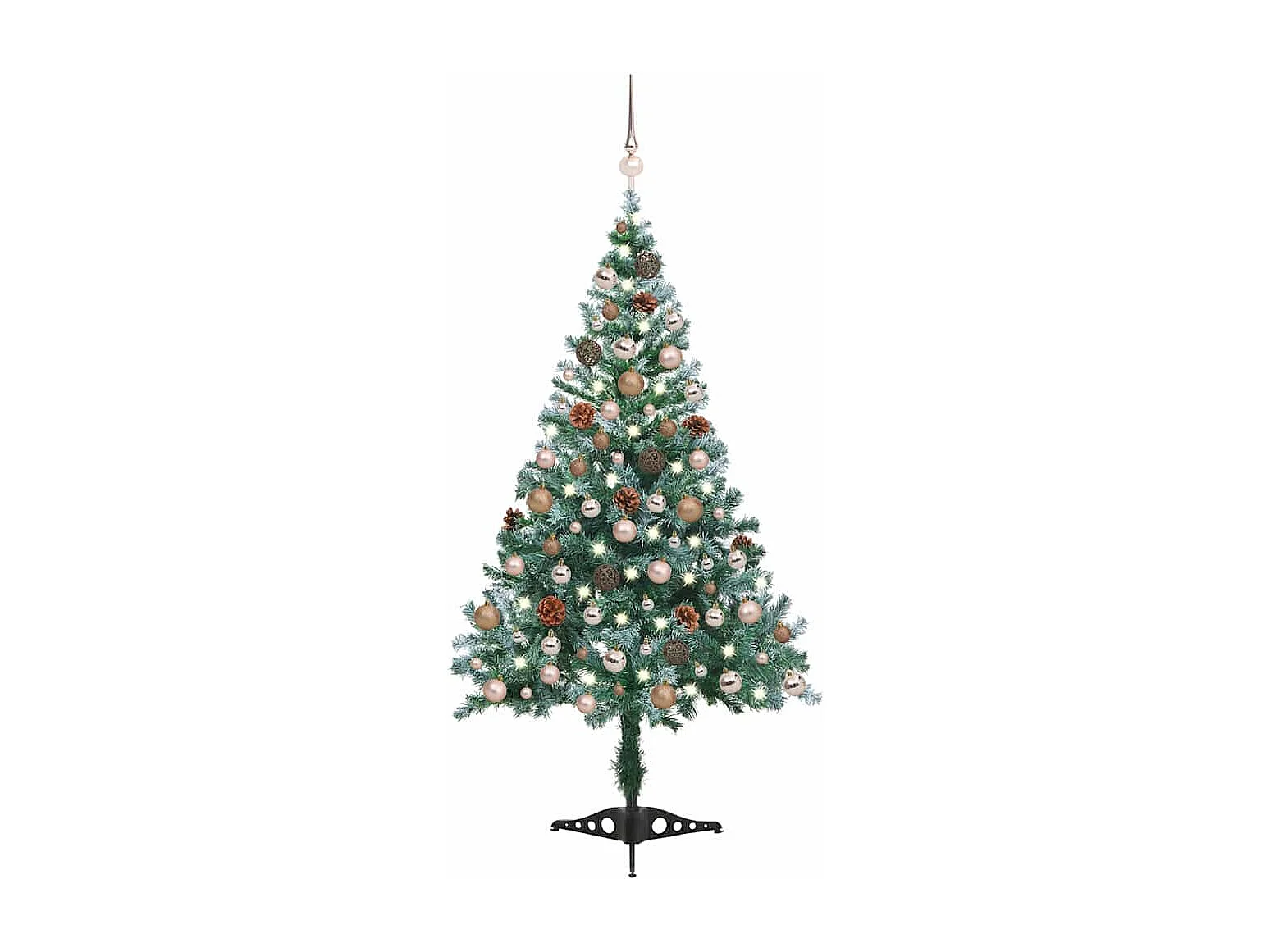 Arbre de Noël givré pré-éclairé et boules pommes de pin 150 cm
