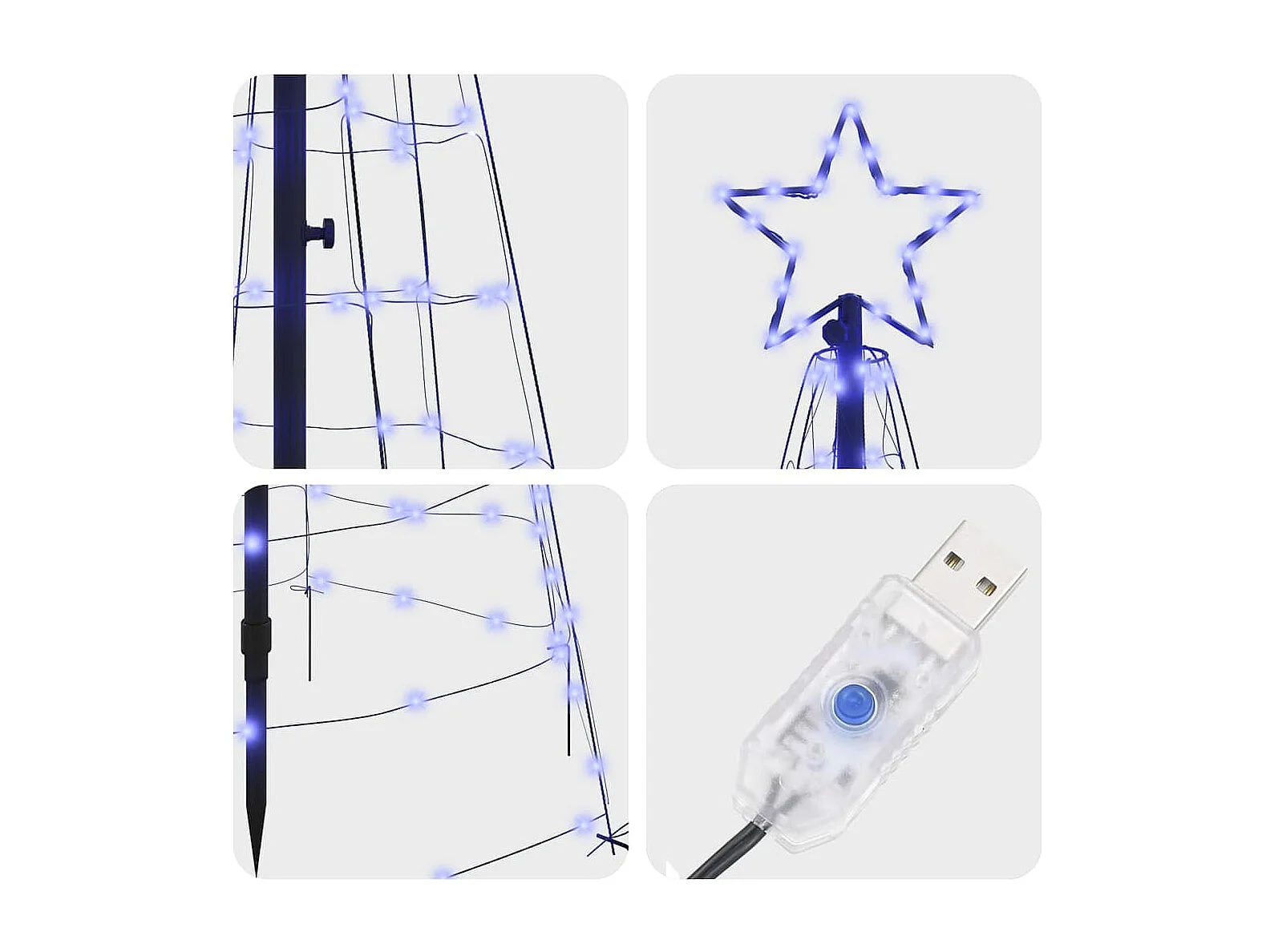 Arbre de Noël LED avec 230 LED Bleu 71 x 71 x 184,5 cm Métal