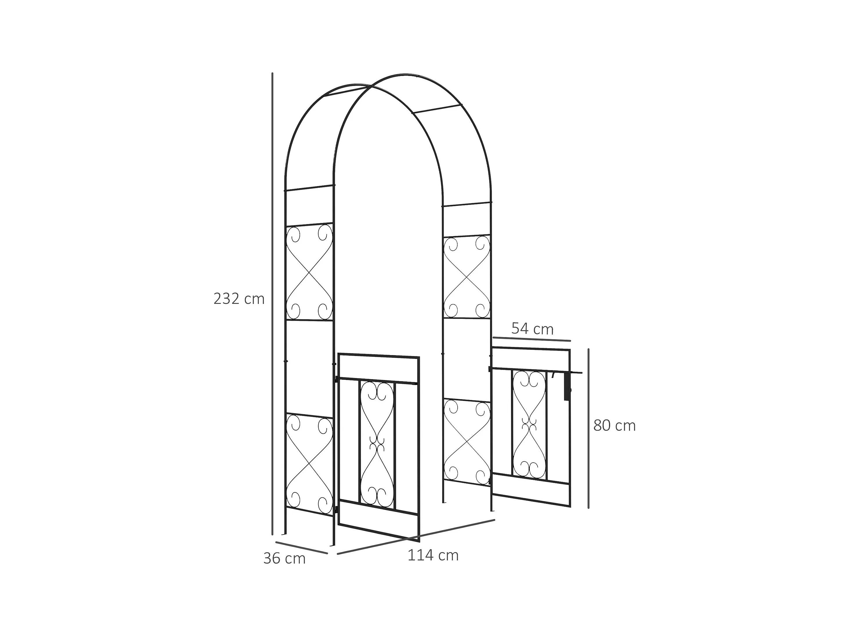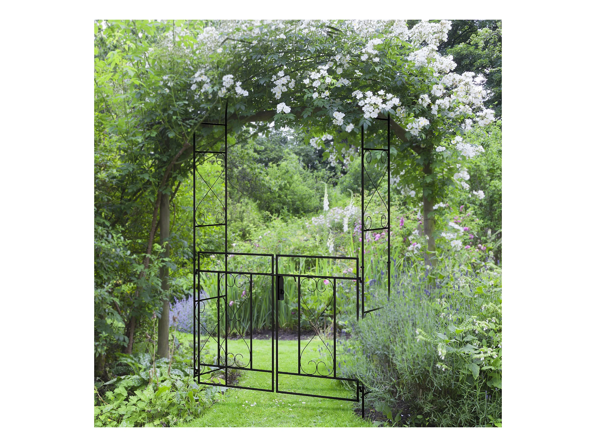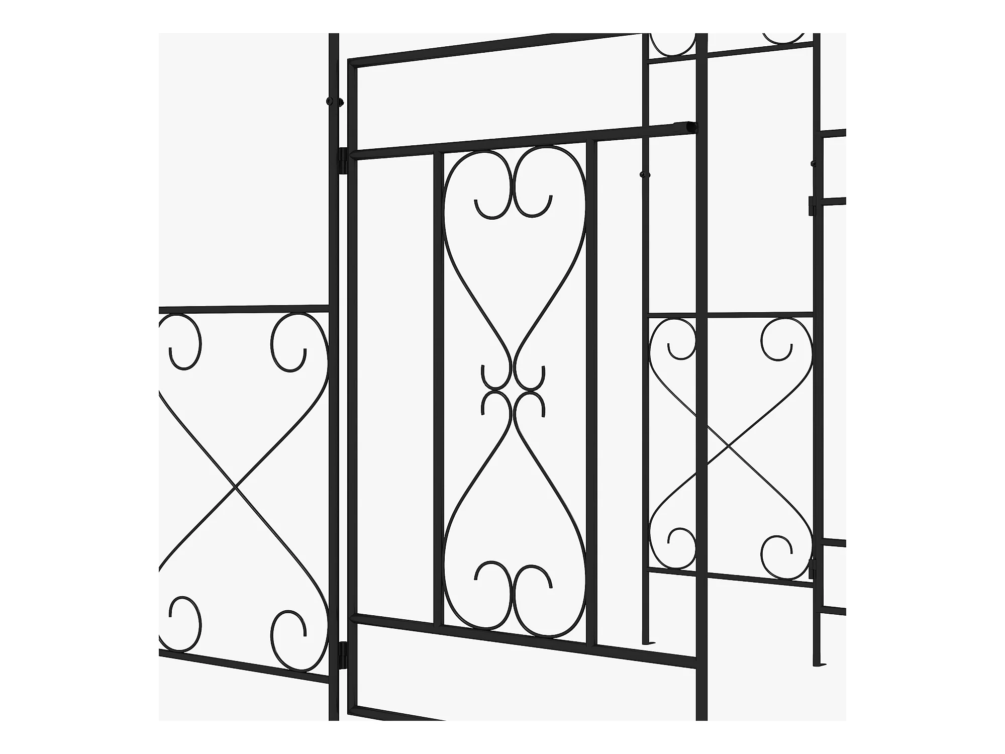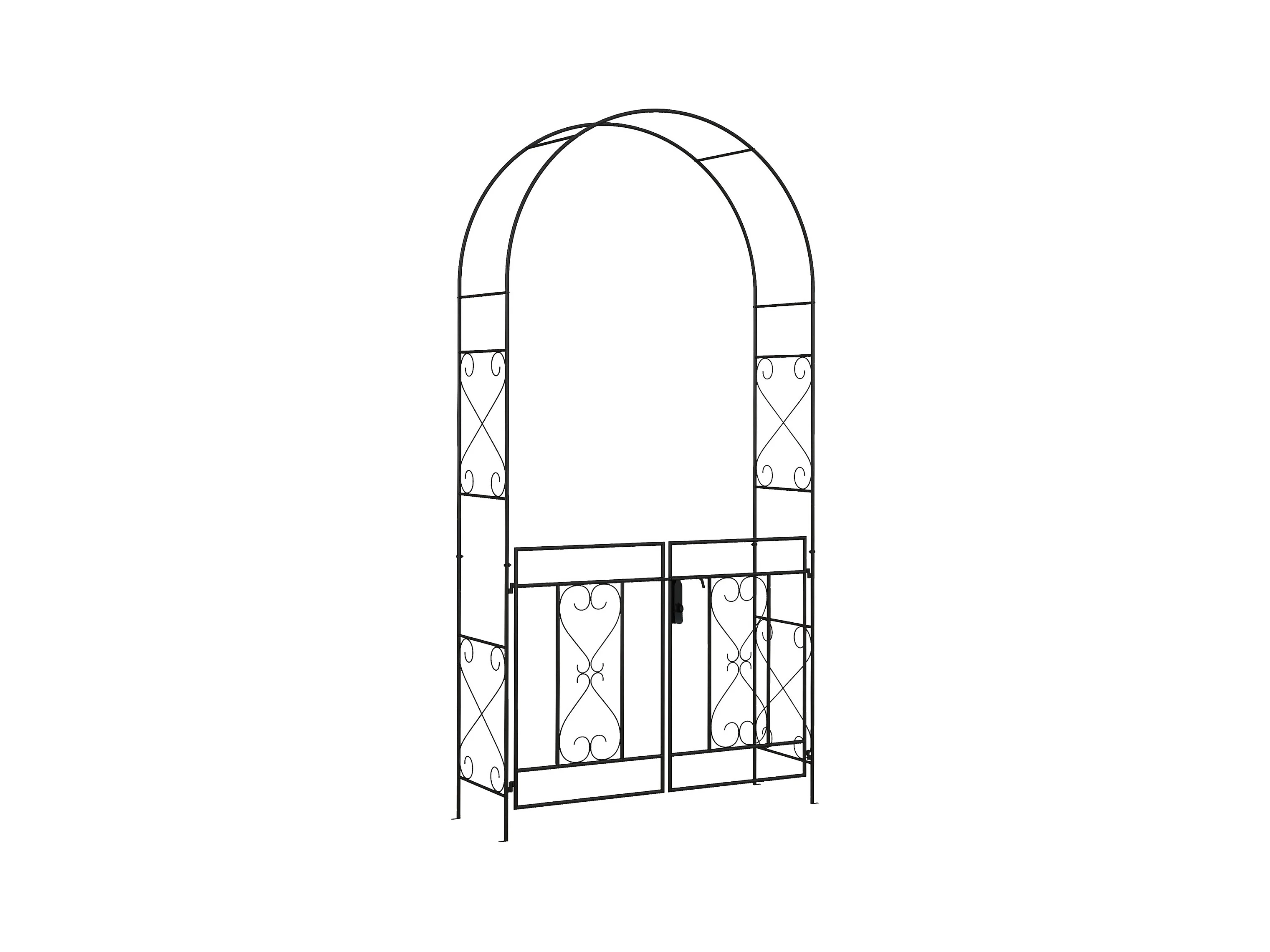 Arche de jardin avec portillon treillis style fer forgé métal époxy noir