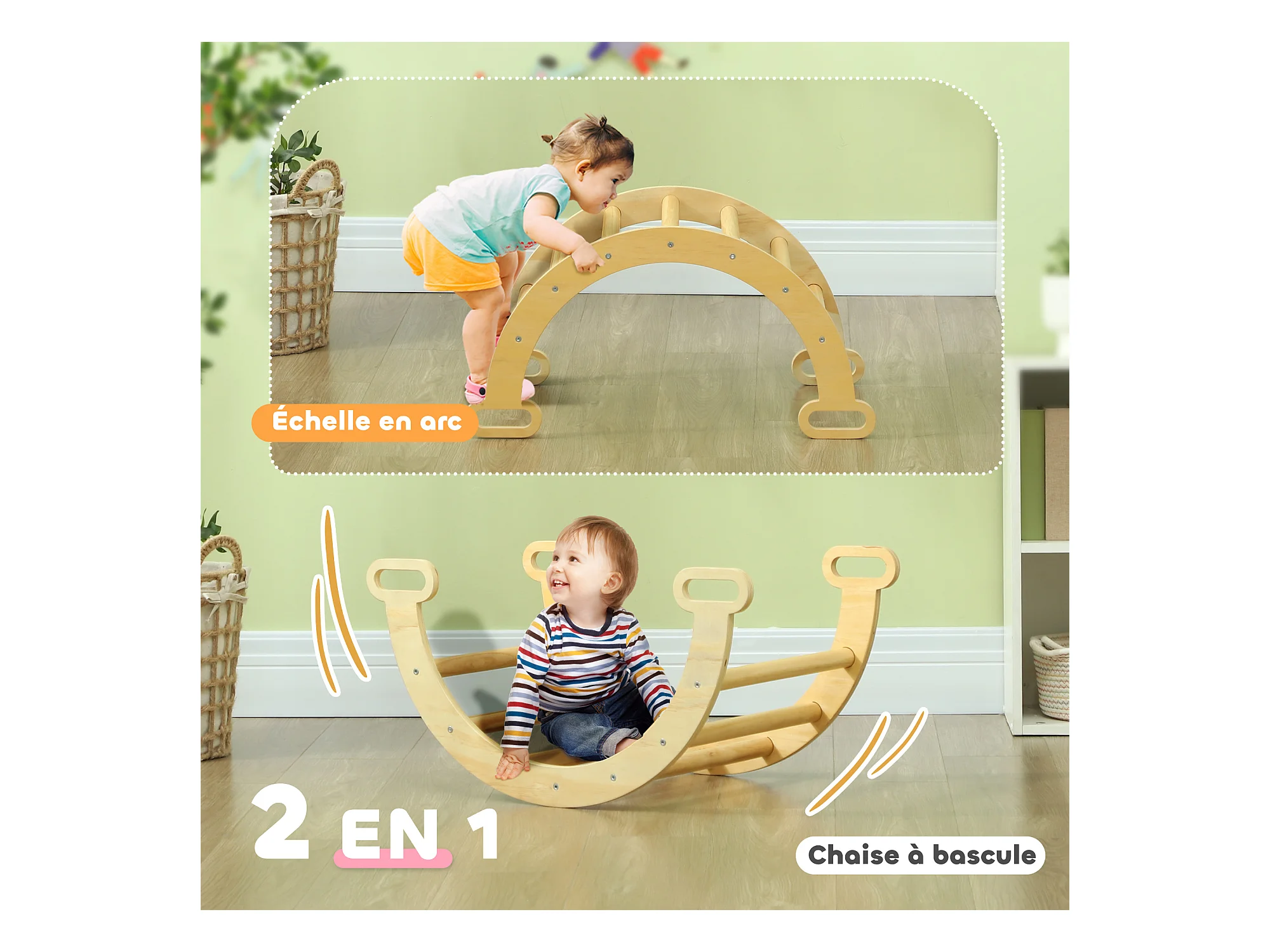 Arche d'escalade enfant - parcours motricité - dim. 68L x 42l x 36H cm - bois pin