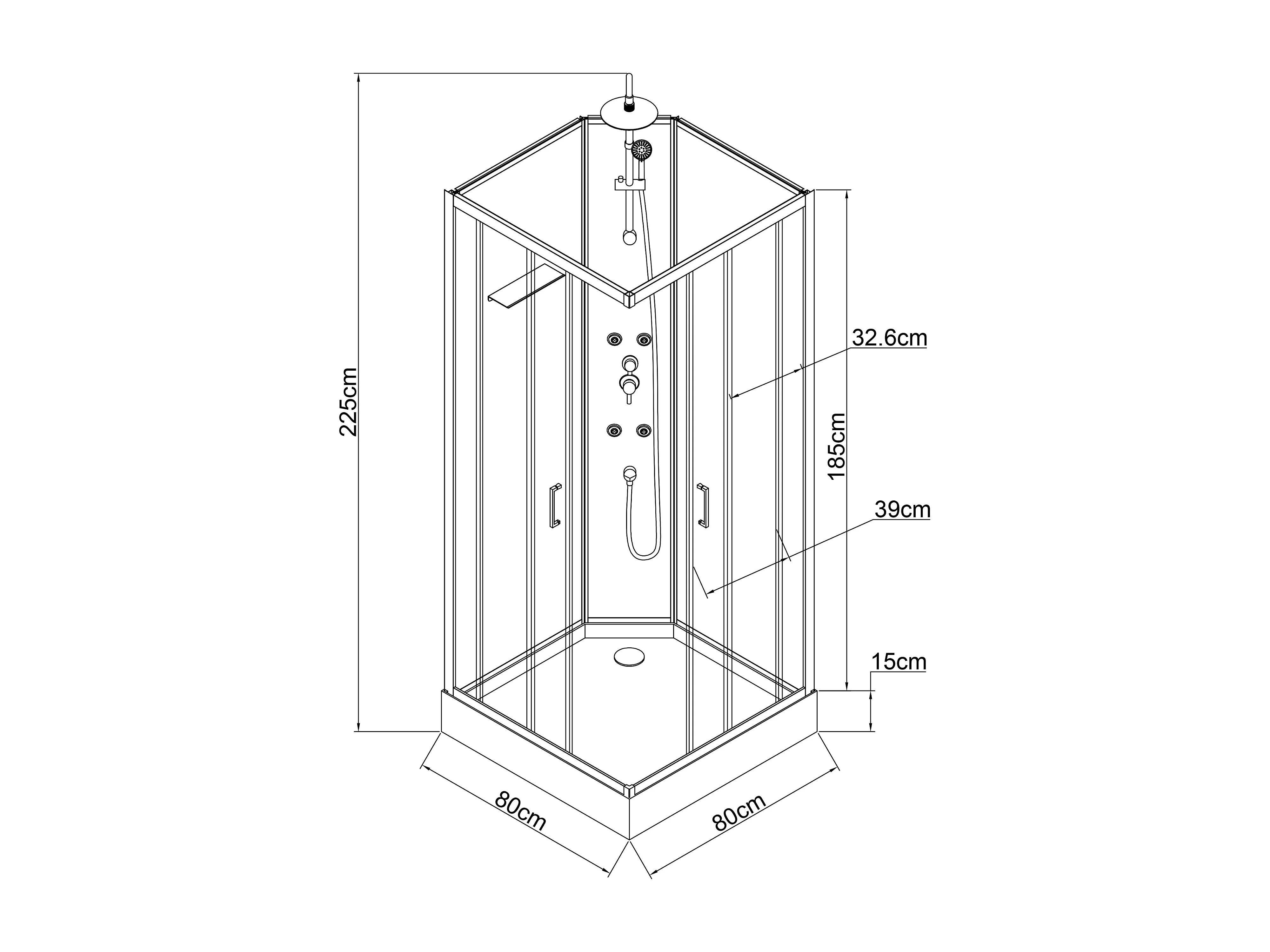 Cabine de douche hydromassante en fibre de bambou - Noir mat - L80 x l80 x H225 cm - ARDALI