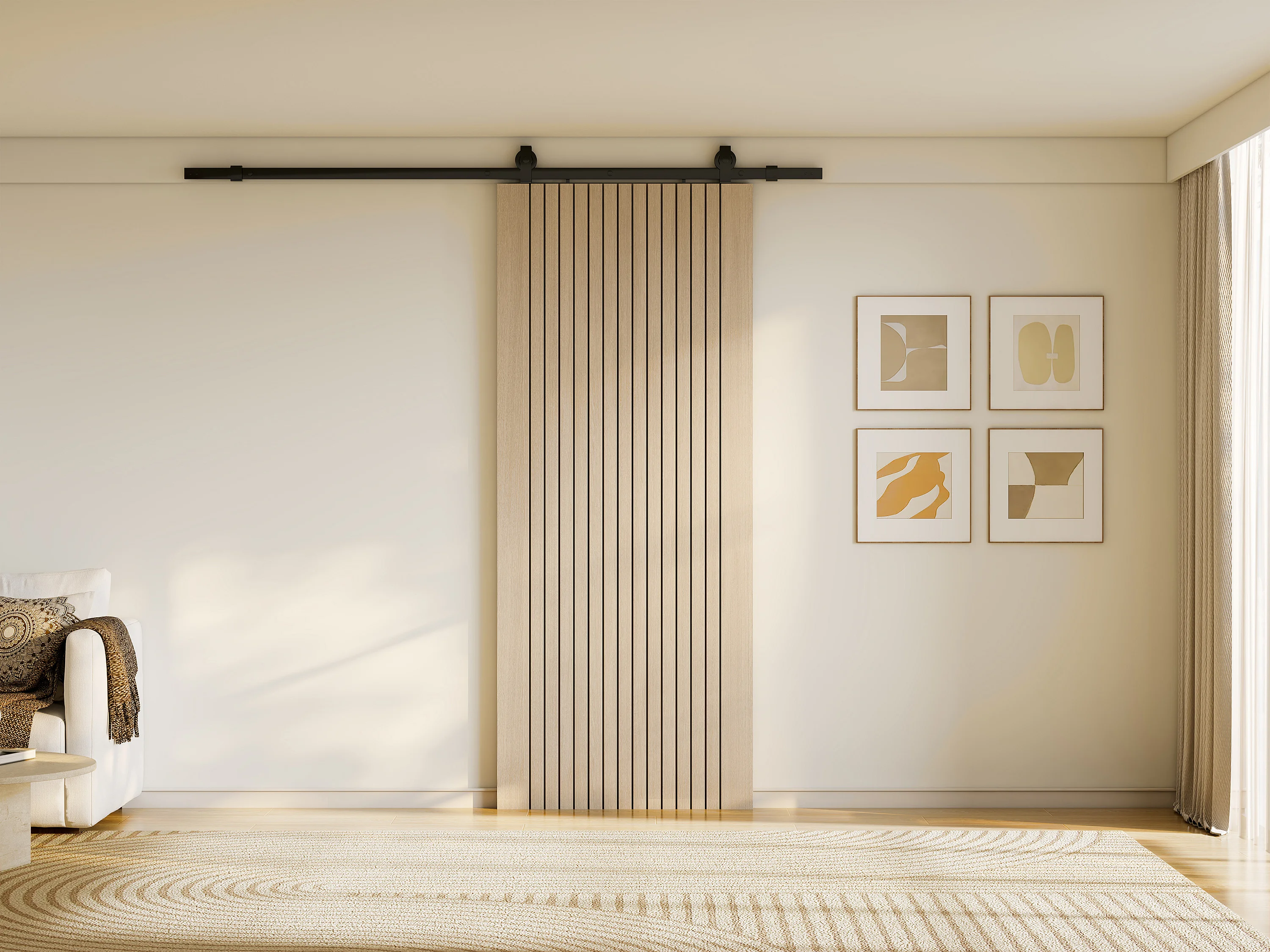 Porte coulissante avec système en applique en bois et MDF striée - H205 x L93 cm - AREZO