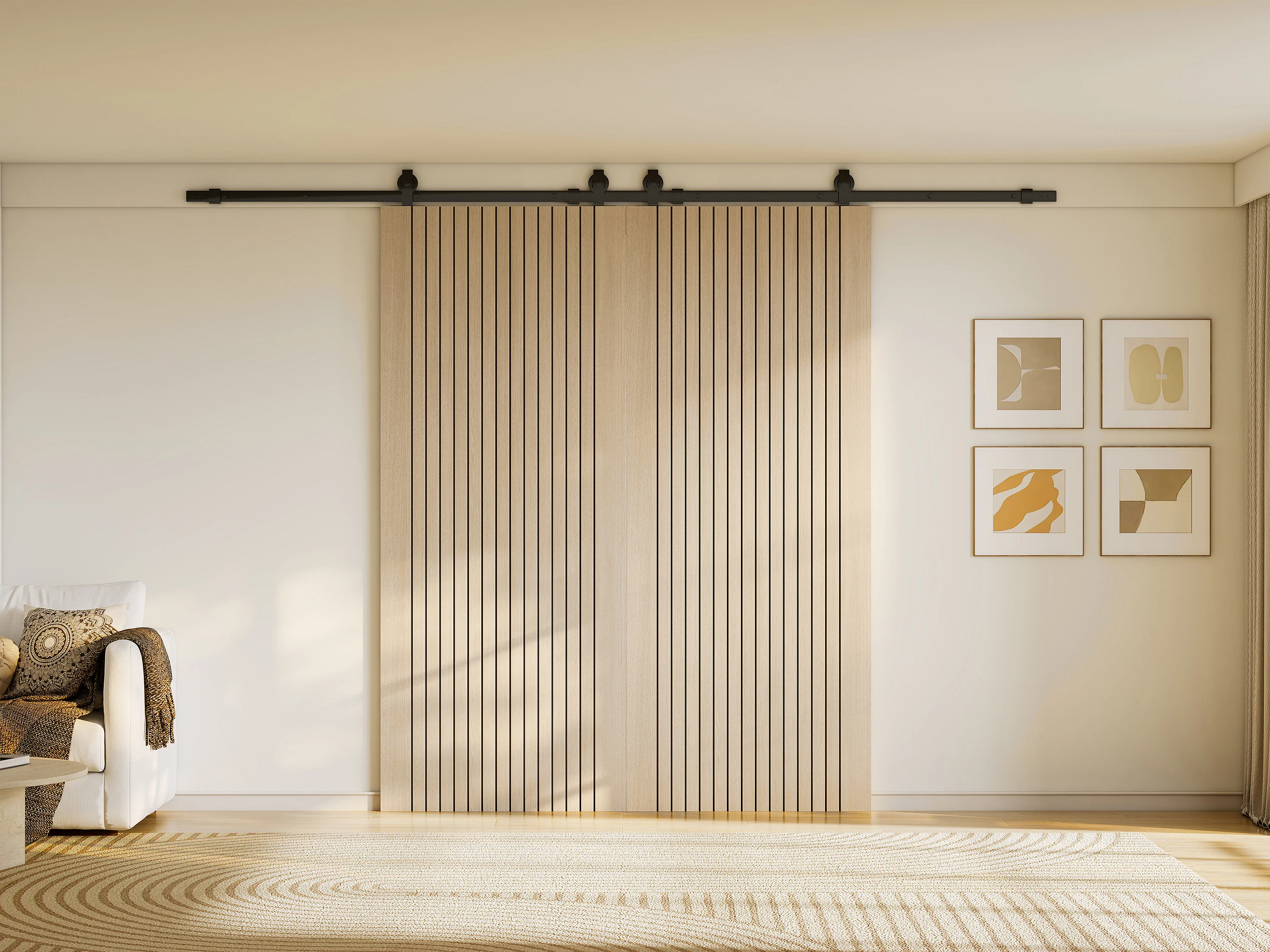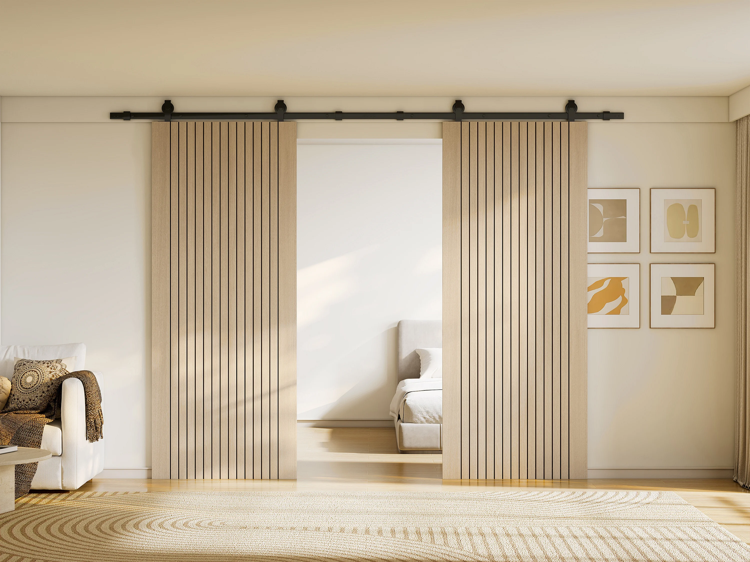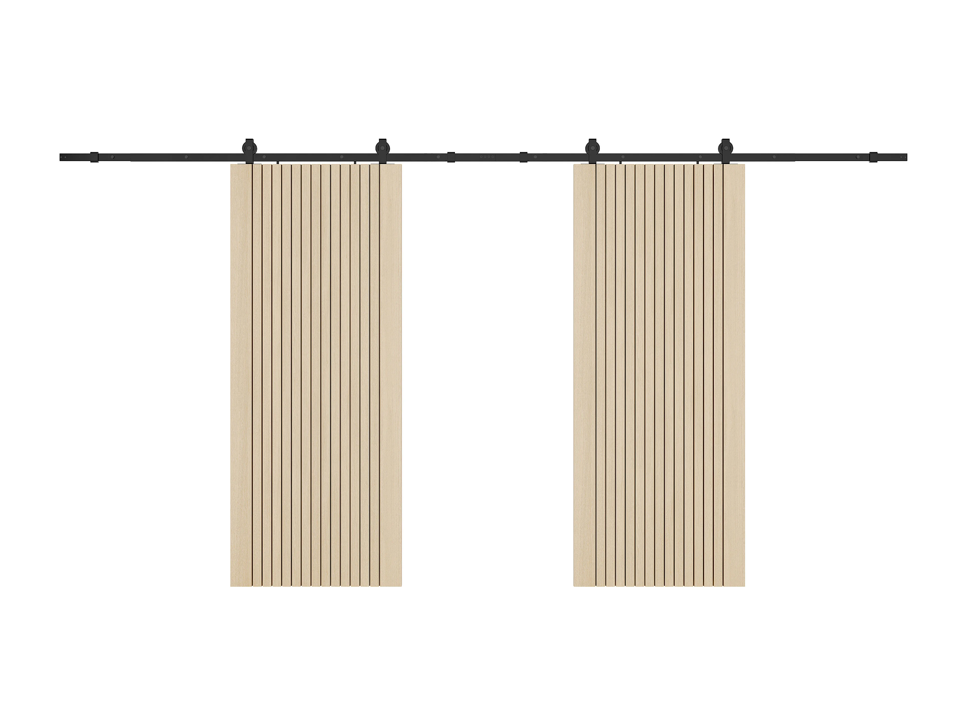 Porte coulissante double avec système en applique en bois et MDF striée - 2 x H205 x L93 cm - AREZO