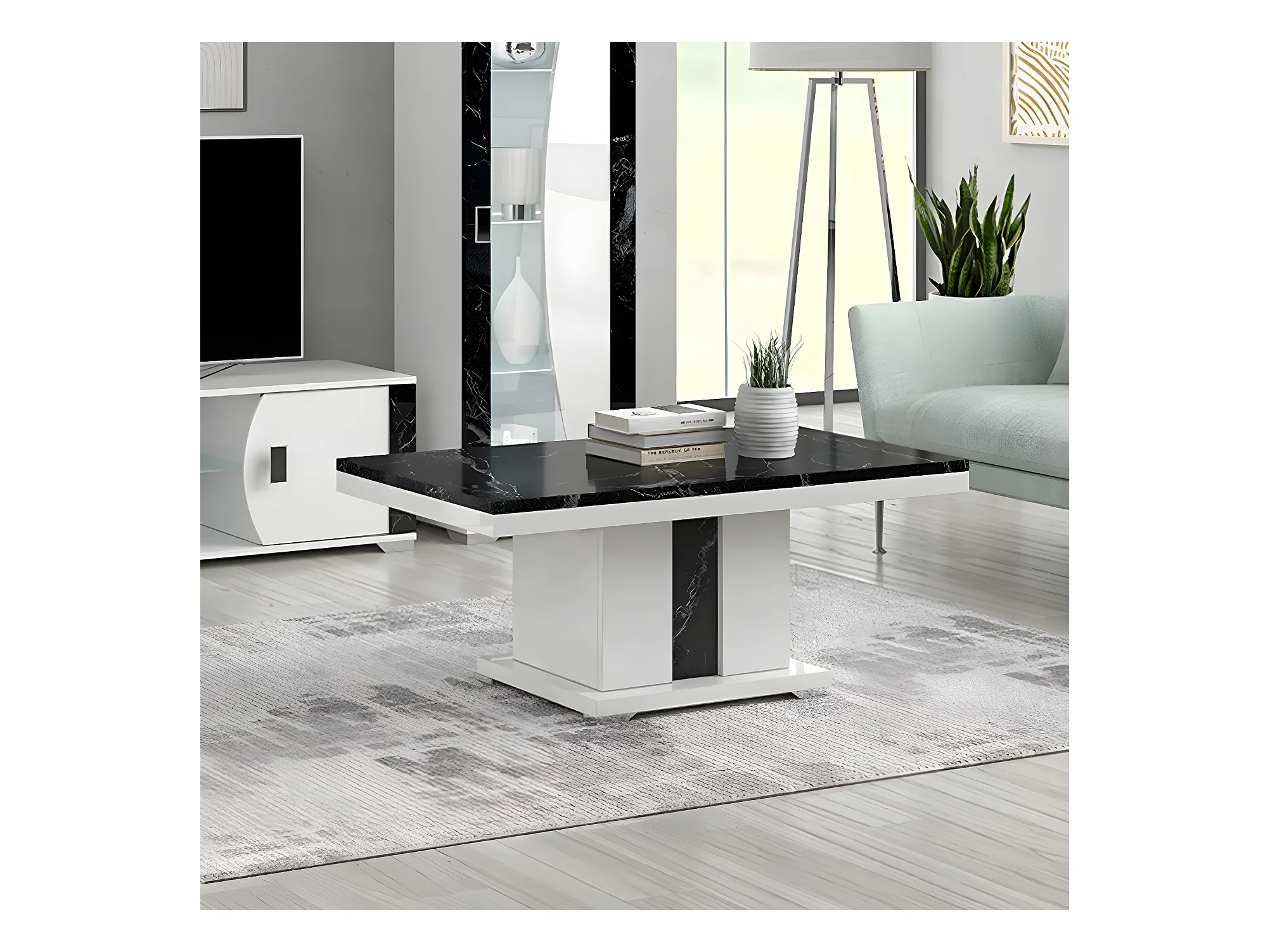 ARIANE - Table Basse Pied Central Blanc et Aspect Marbre Noir