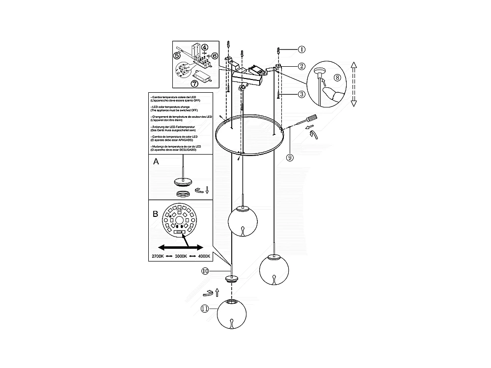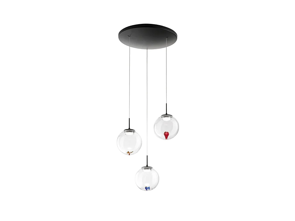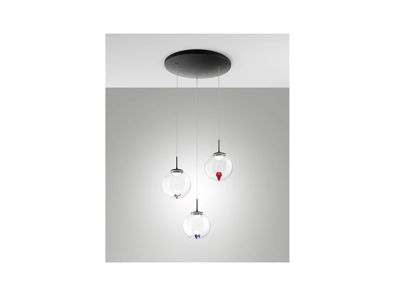 Ariel - Suspension circulaire 3 lumières avec formes Fabas Luce - LED 21W dimmable - Rosace ronde transparente d.35cm