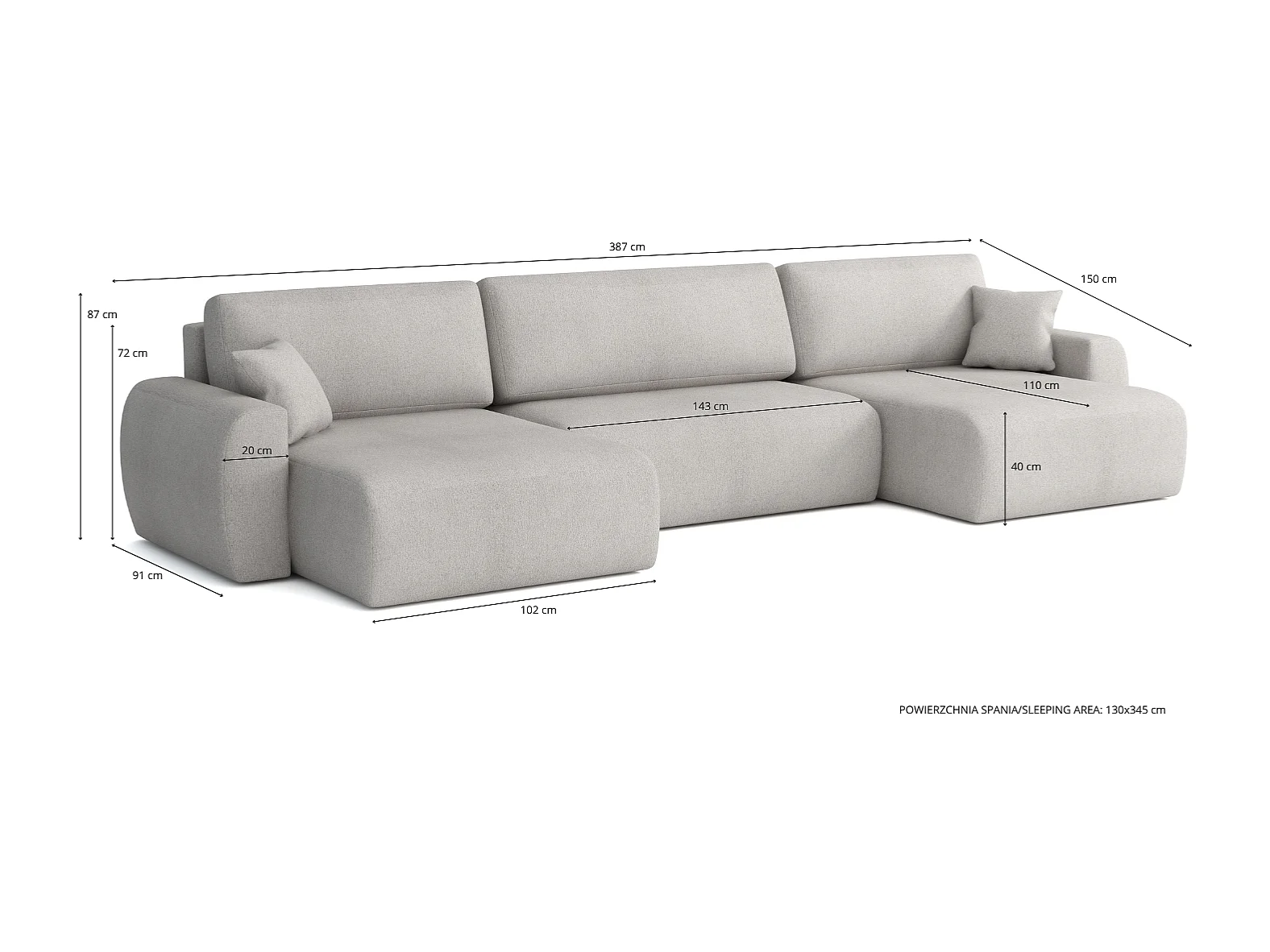 ARIEL U – Canapé d’angle convertible 315x142x87 cm, tissu Velo 19 noir