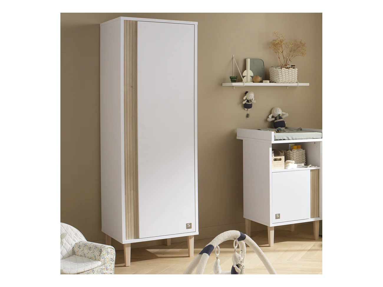 Armoire 1 porte détail imitation bois texturé et pieds bois PALOMA - Sauthon