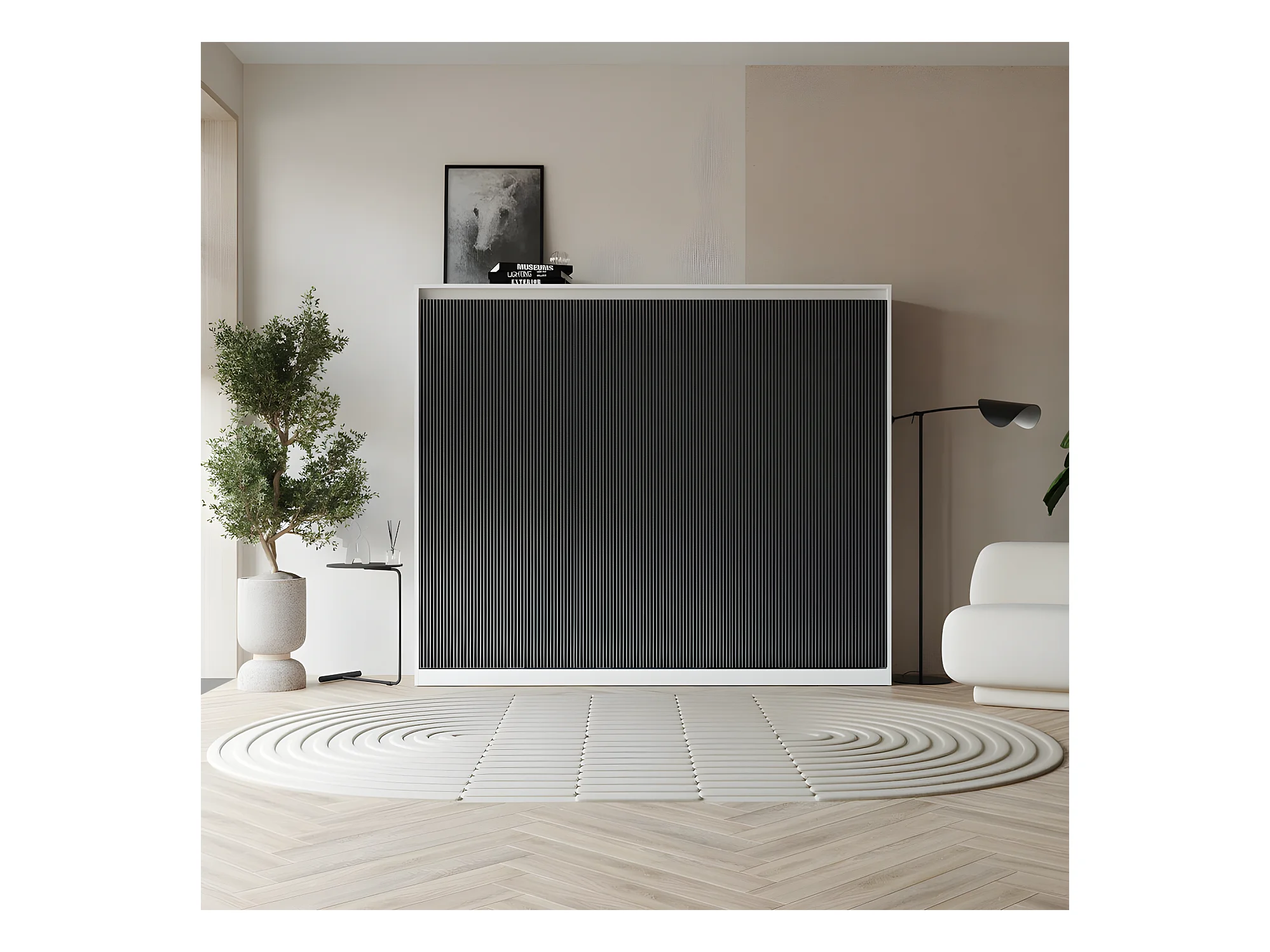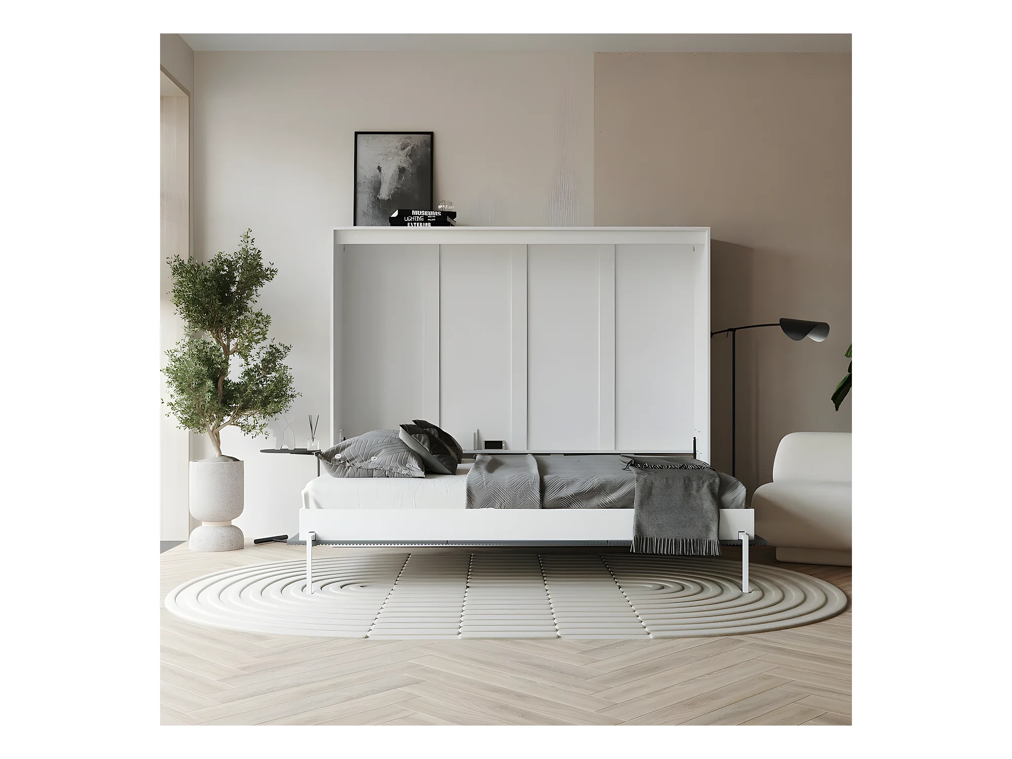 Armoire 160x200cm Horizontal Lit escamotable Matelas inclus LUXUS Lit Rabattable Blanc/Anthracite