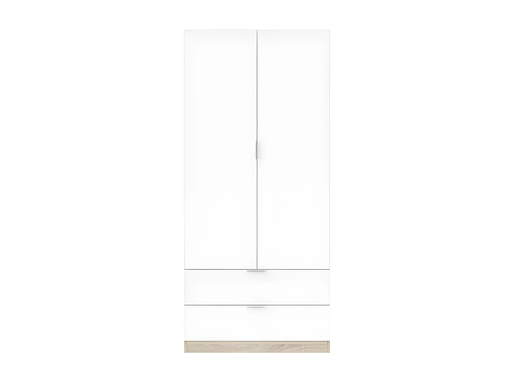 Armoire 2 portes + 2 tiroirs Blanc/Chêne - WAO - L 81.5 x l 52 x H 180 cm