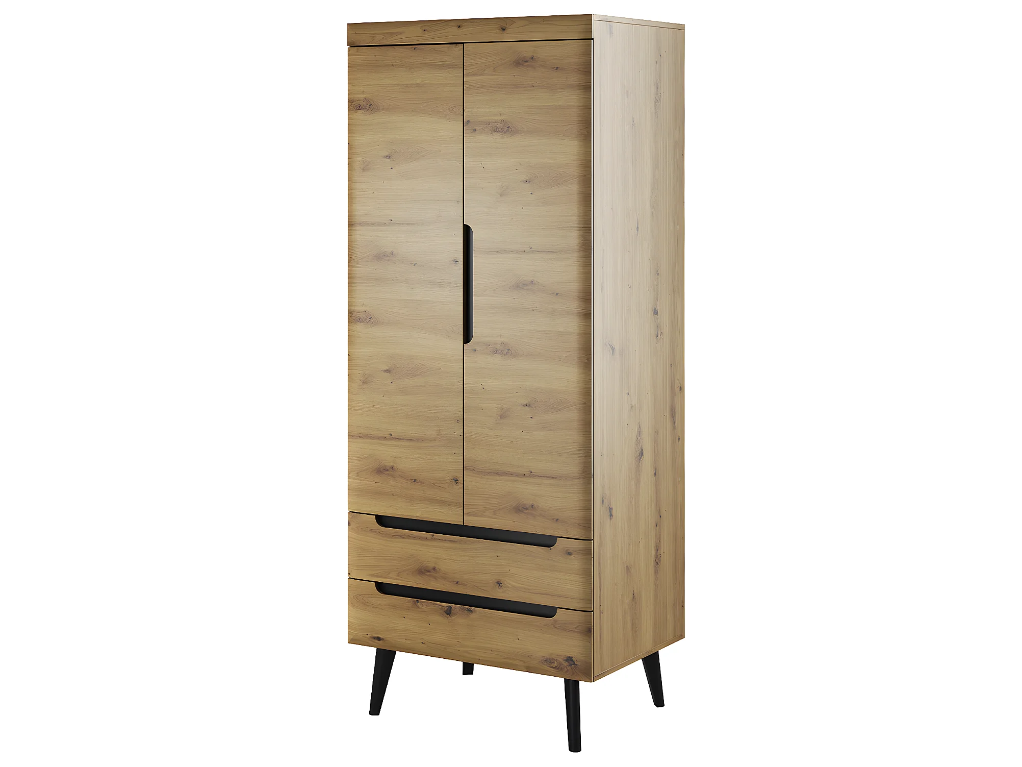 Armoire 2 portes 2 tiroirs Lana Bois et Noir