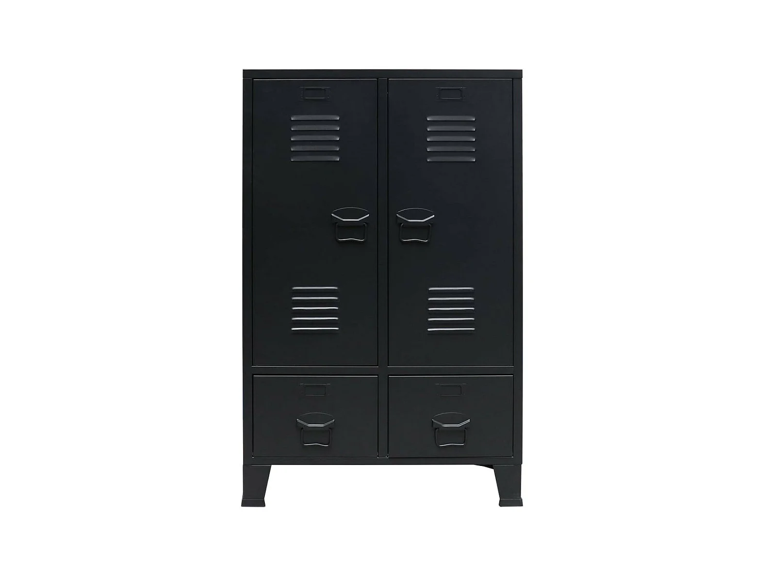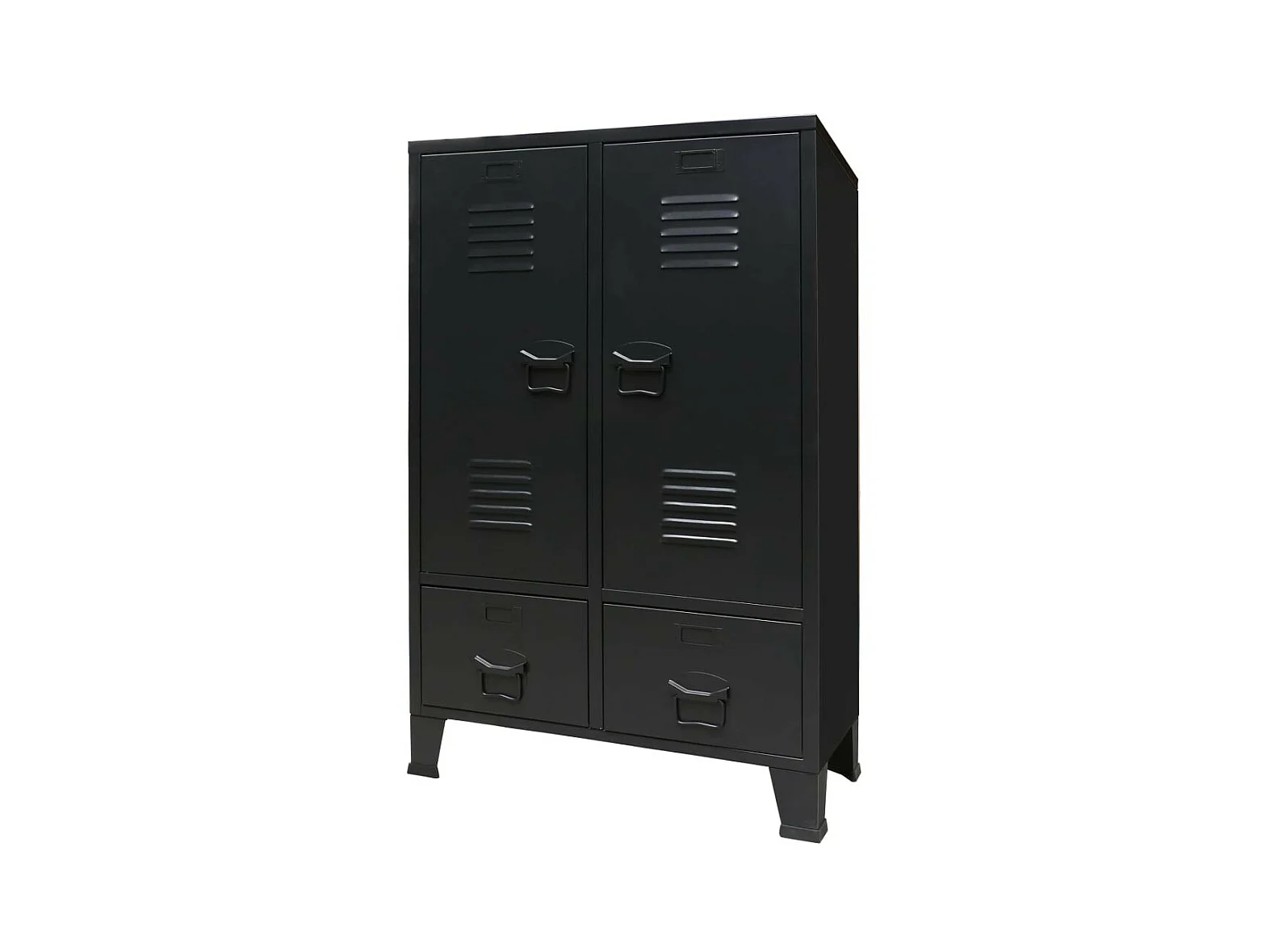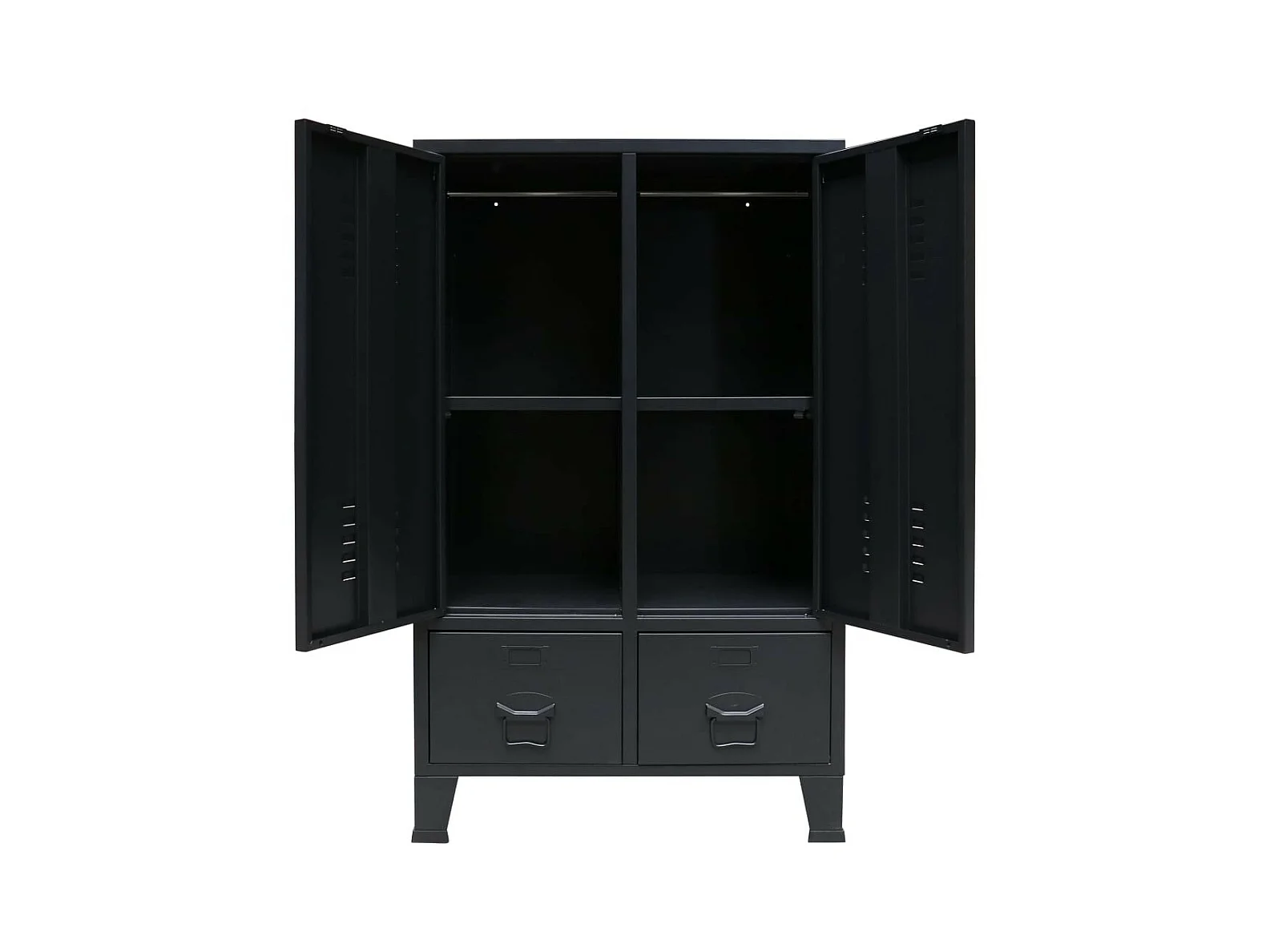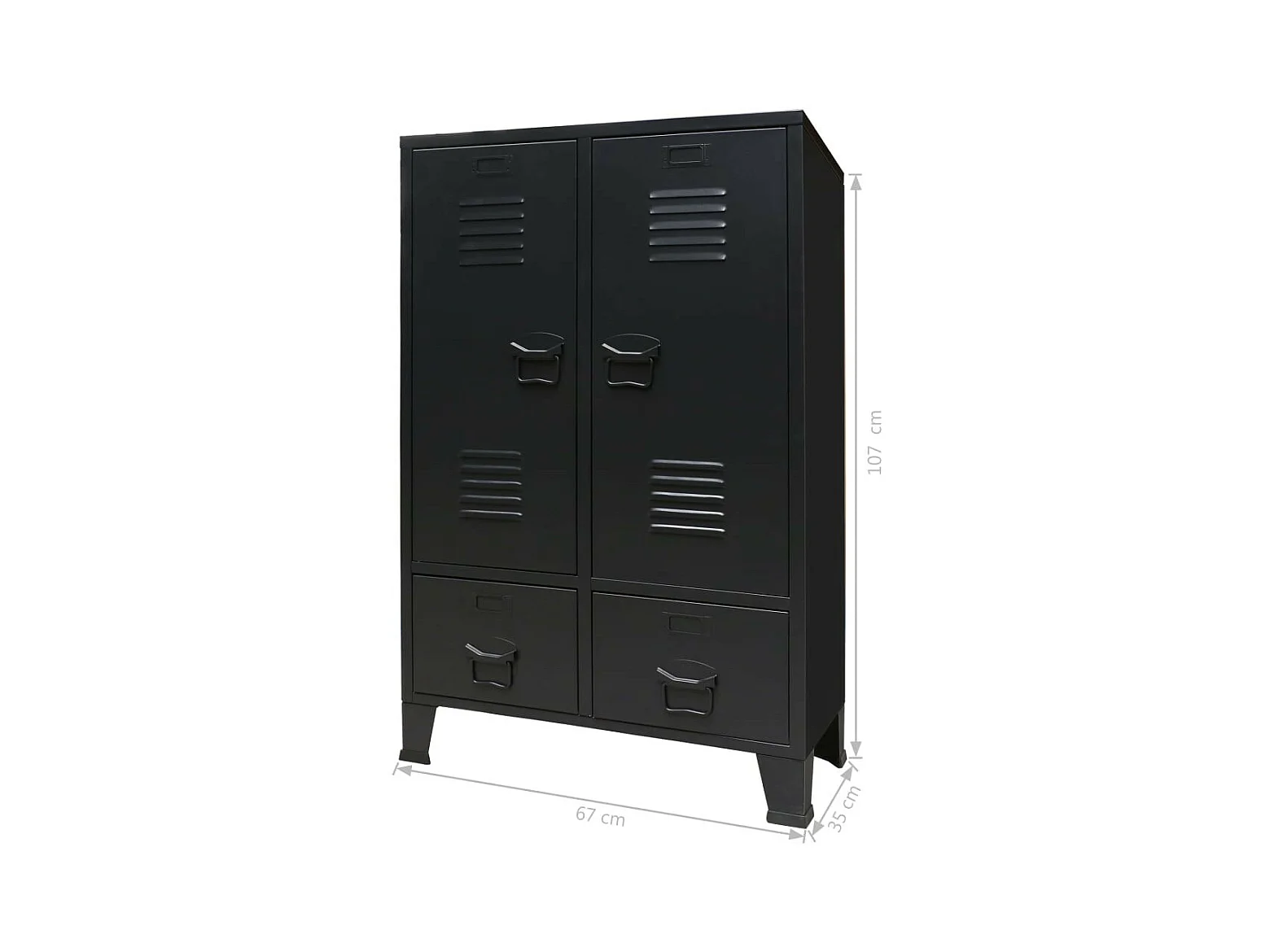 Armoire 2 portes 2 tiroirs métal noir industriel Kibane 68cm