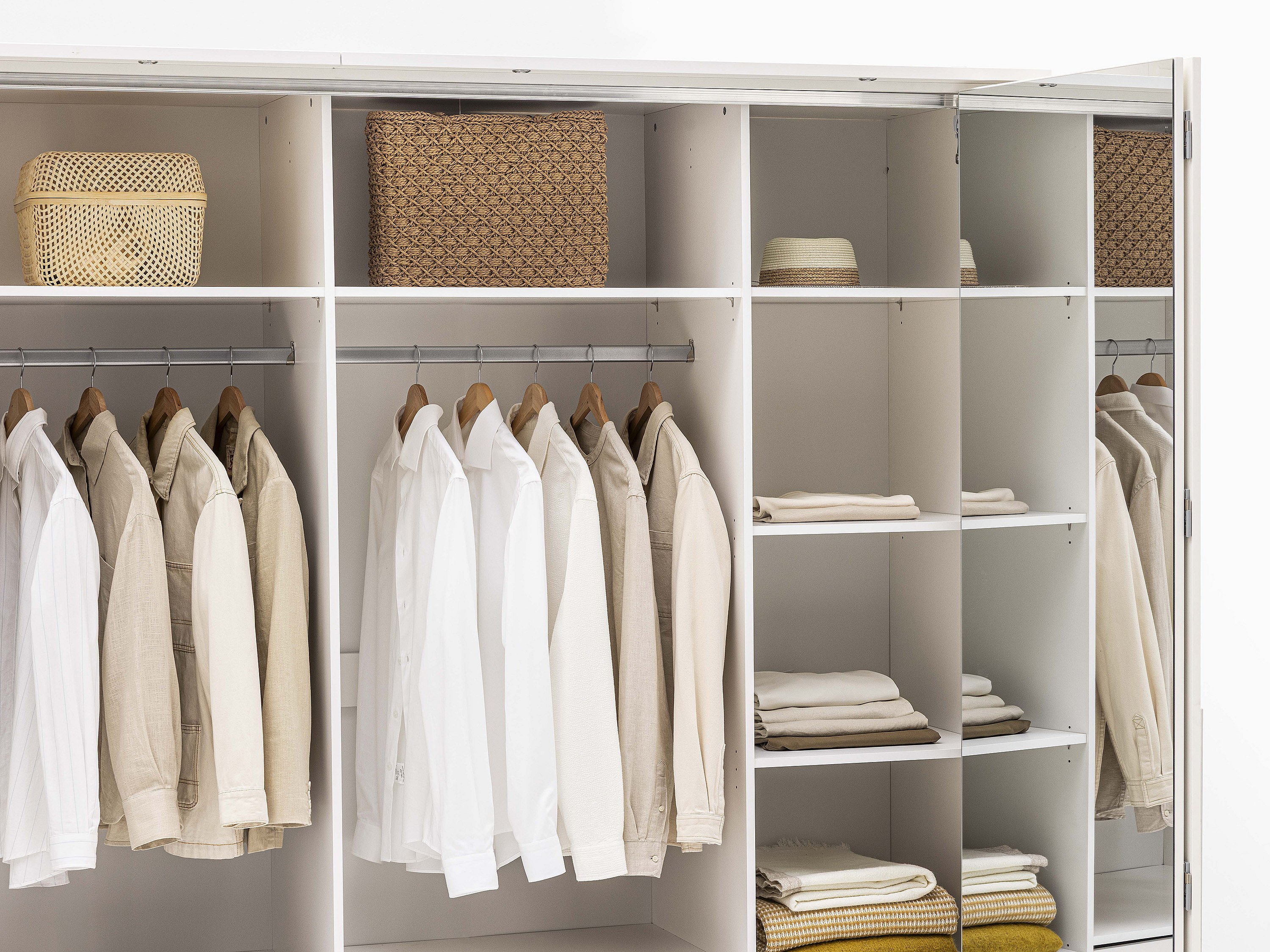 Armoire 2 portes - Avec miroir et LEDs - L255 cm - Blanc - INGINA