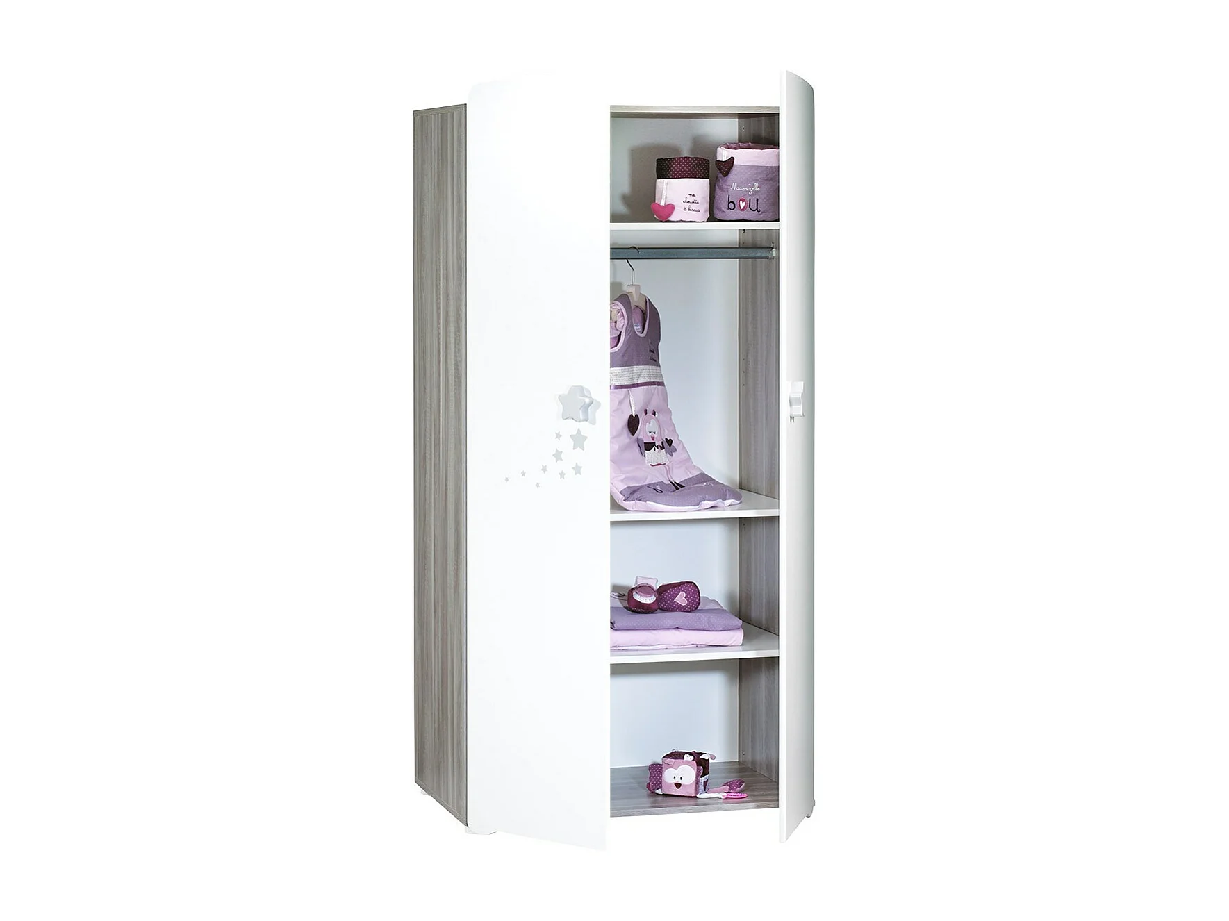 Armoire 2 portes bébé 175x85x56cm en bois blanc NAO - BabyPrice
