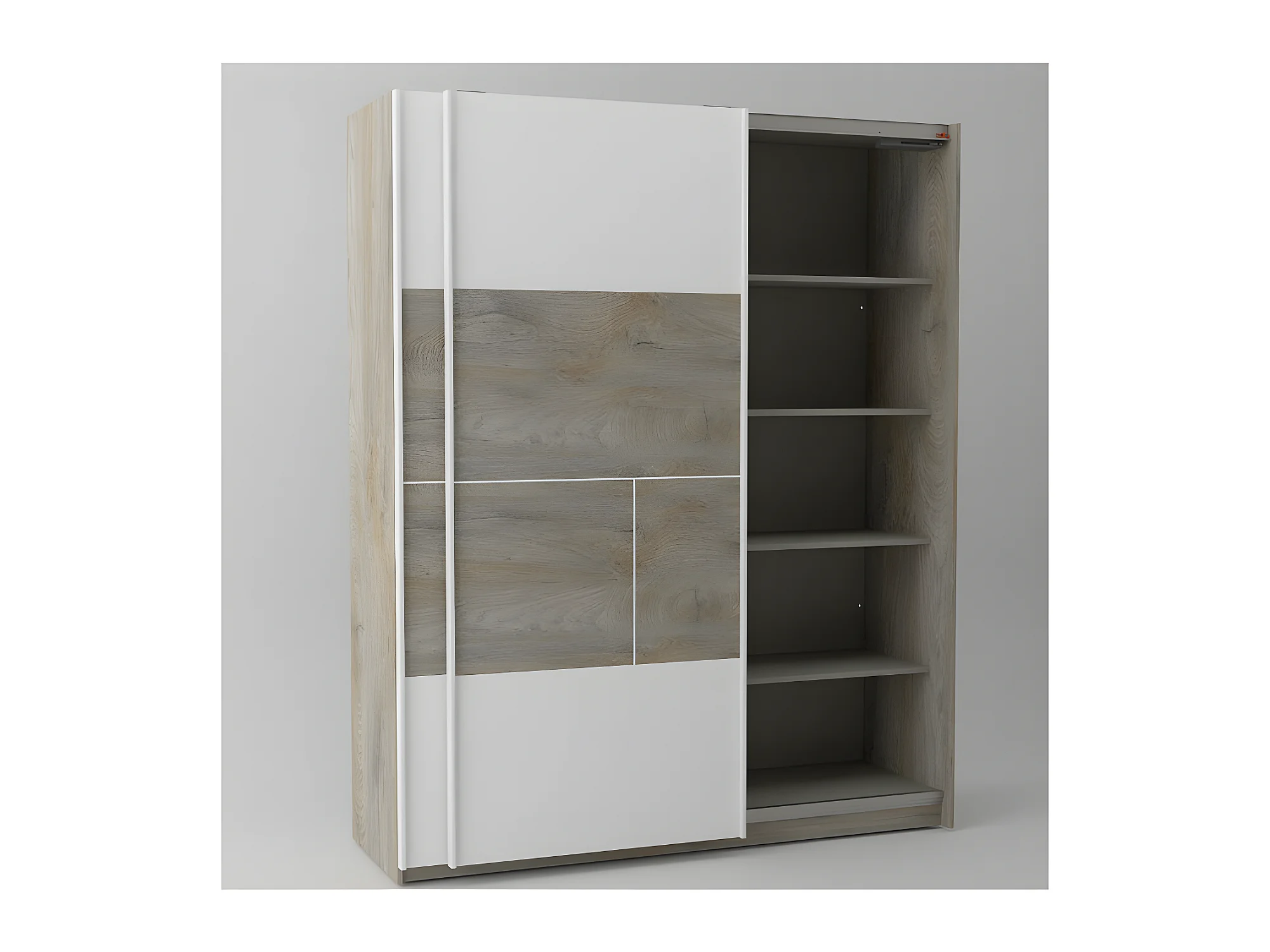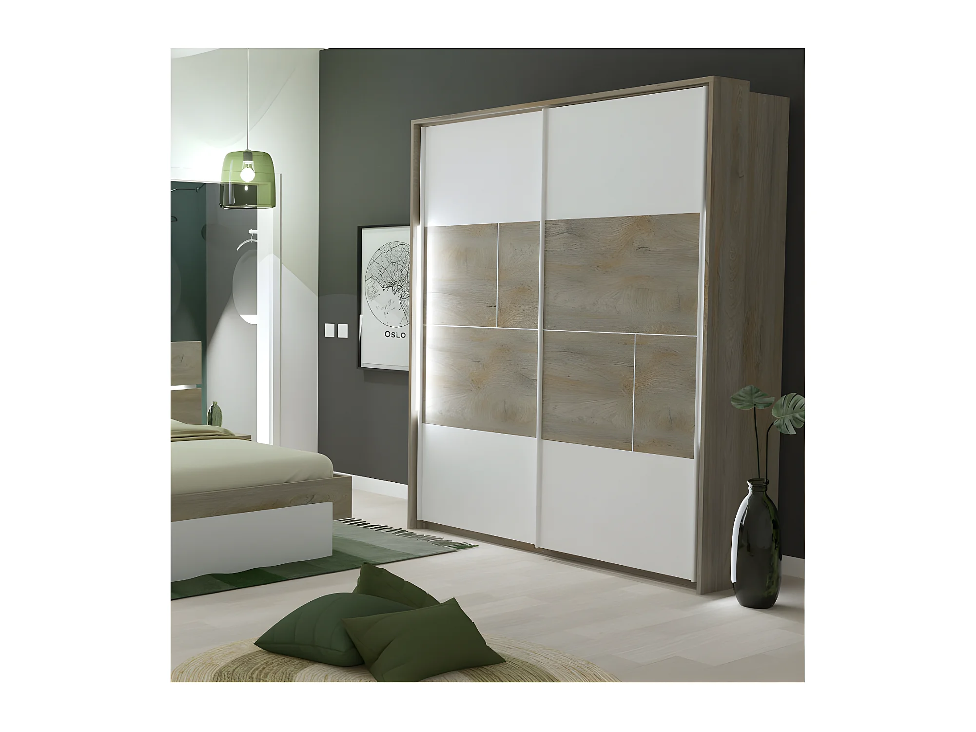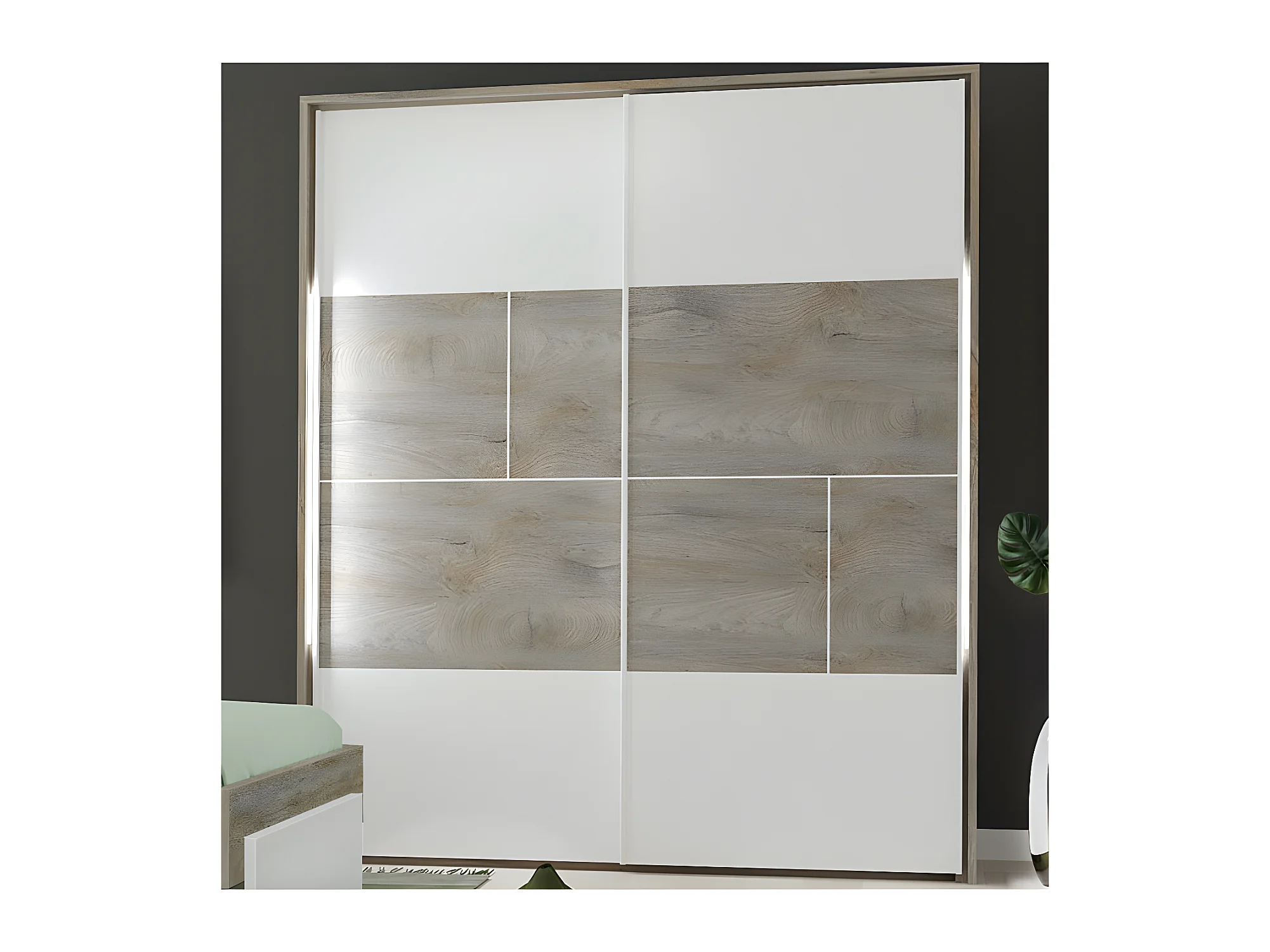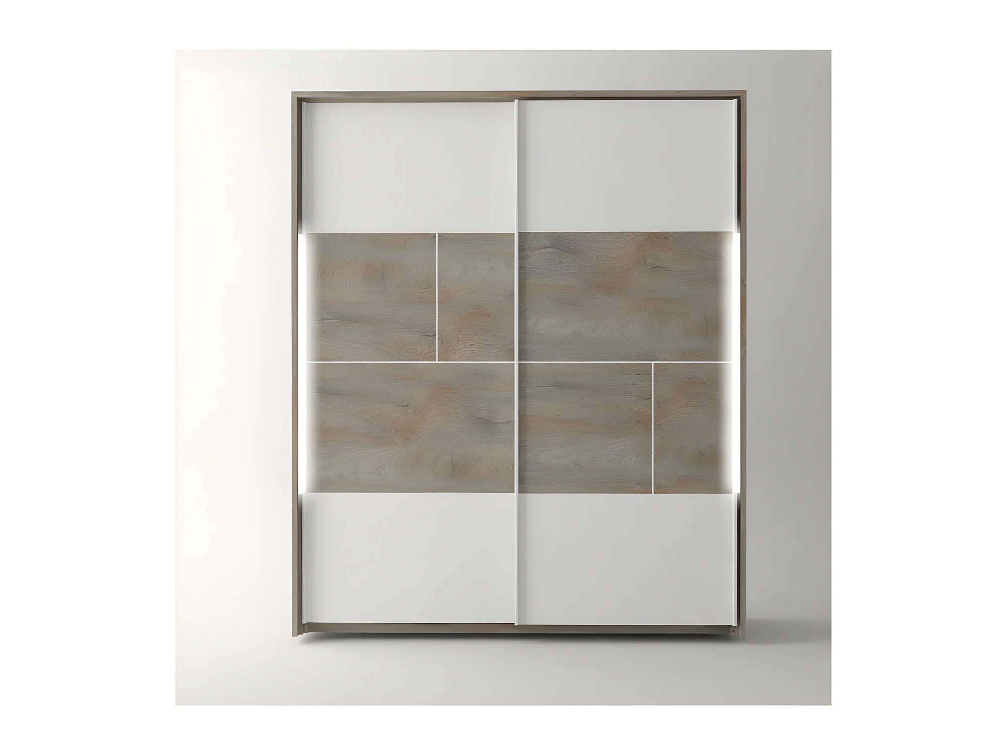 Armoire 2 portes coulissantes à LEDs Chêne délavé/Blanc mat - FLORINE