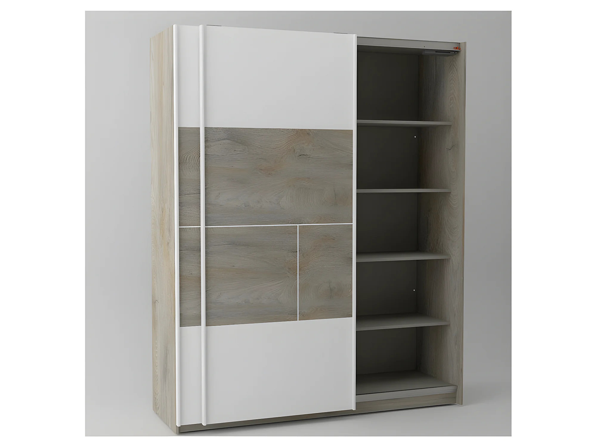 Armoire 2 portes coulissantes Chêne délavé/Blanc mat - FLORINE