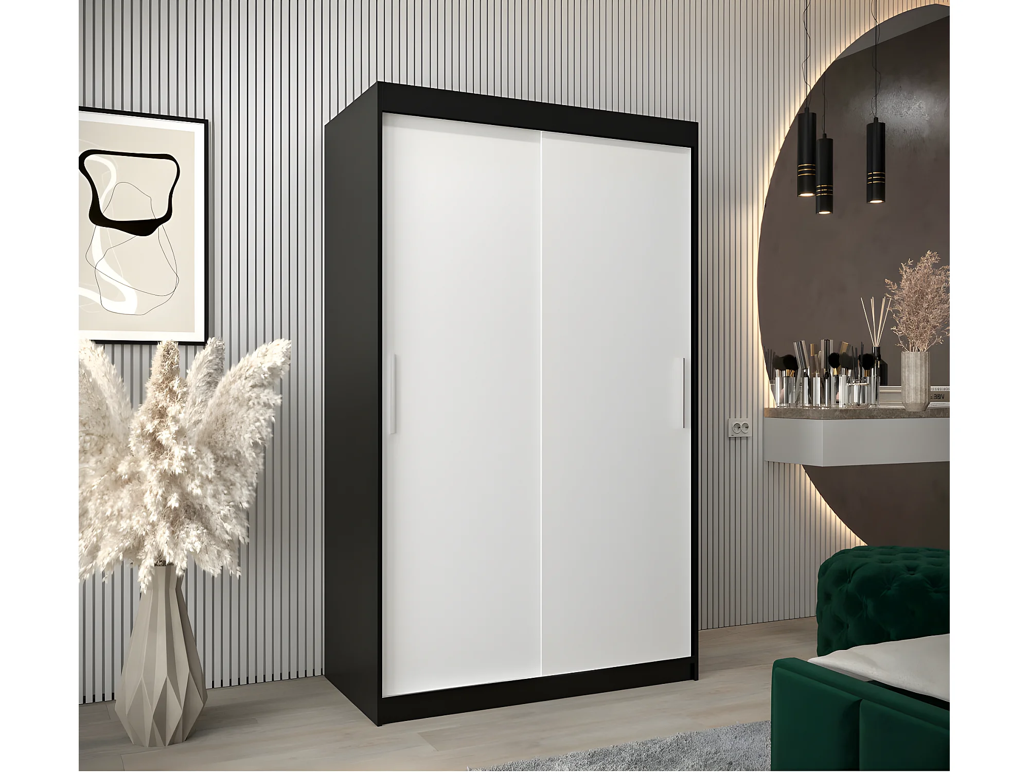 Armoire 2 portes coulissantes Tokyo 120x200 cm Noir - Blanc