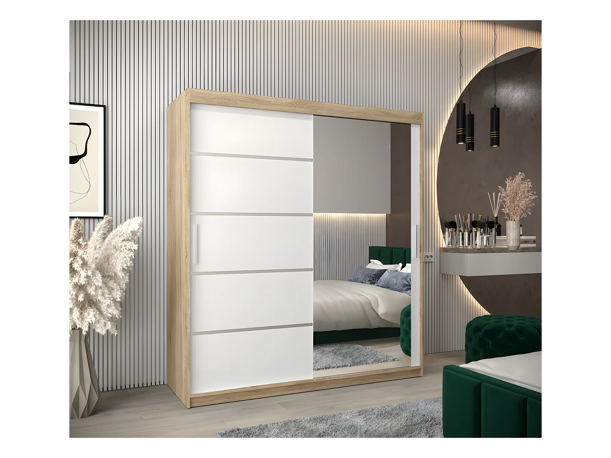 Armoire 2 portes coulissantes Verona 2 180x200 cm avec miroir Pin - Blanc