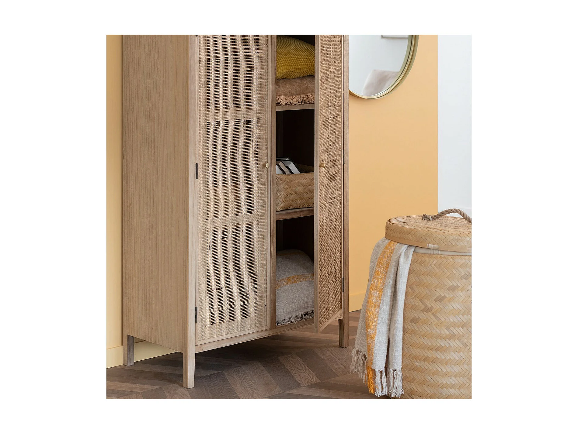Armoire 2 portes en bois et rotin naturel - L80 cm