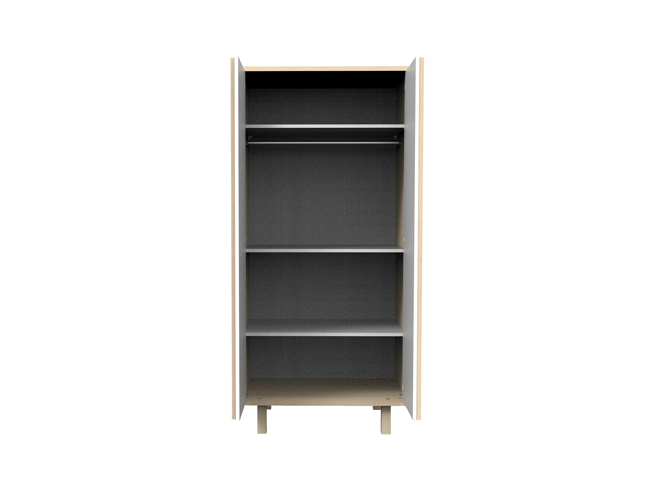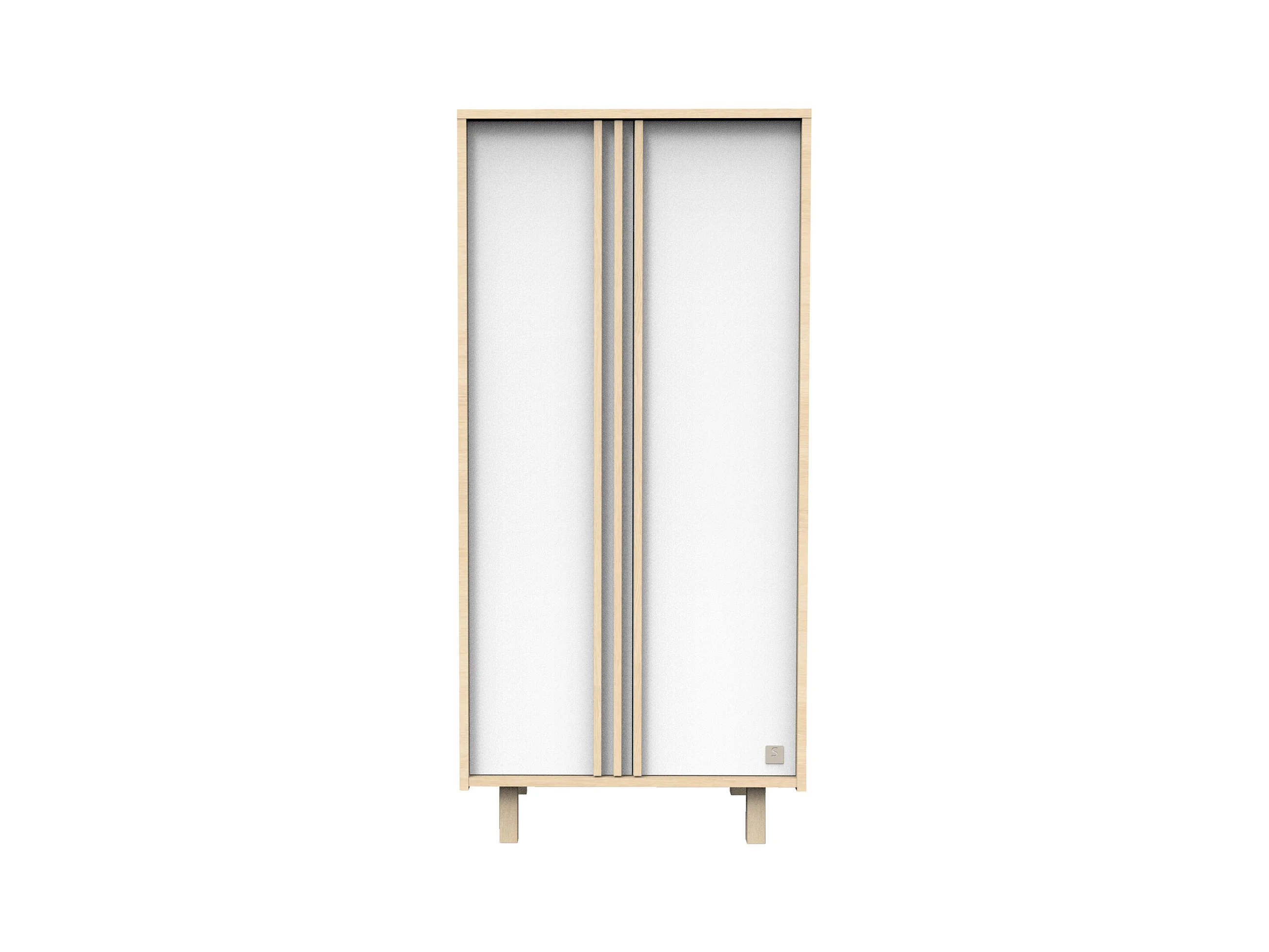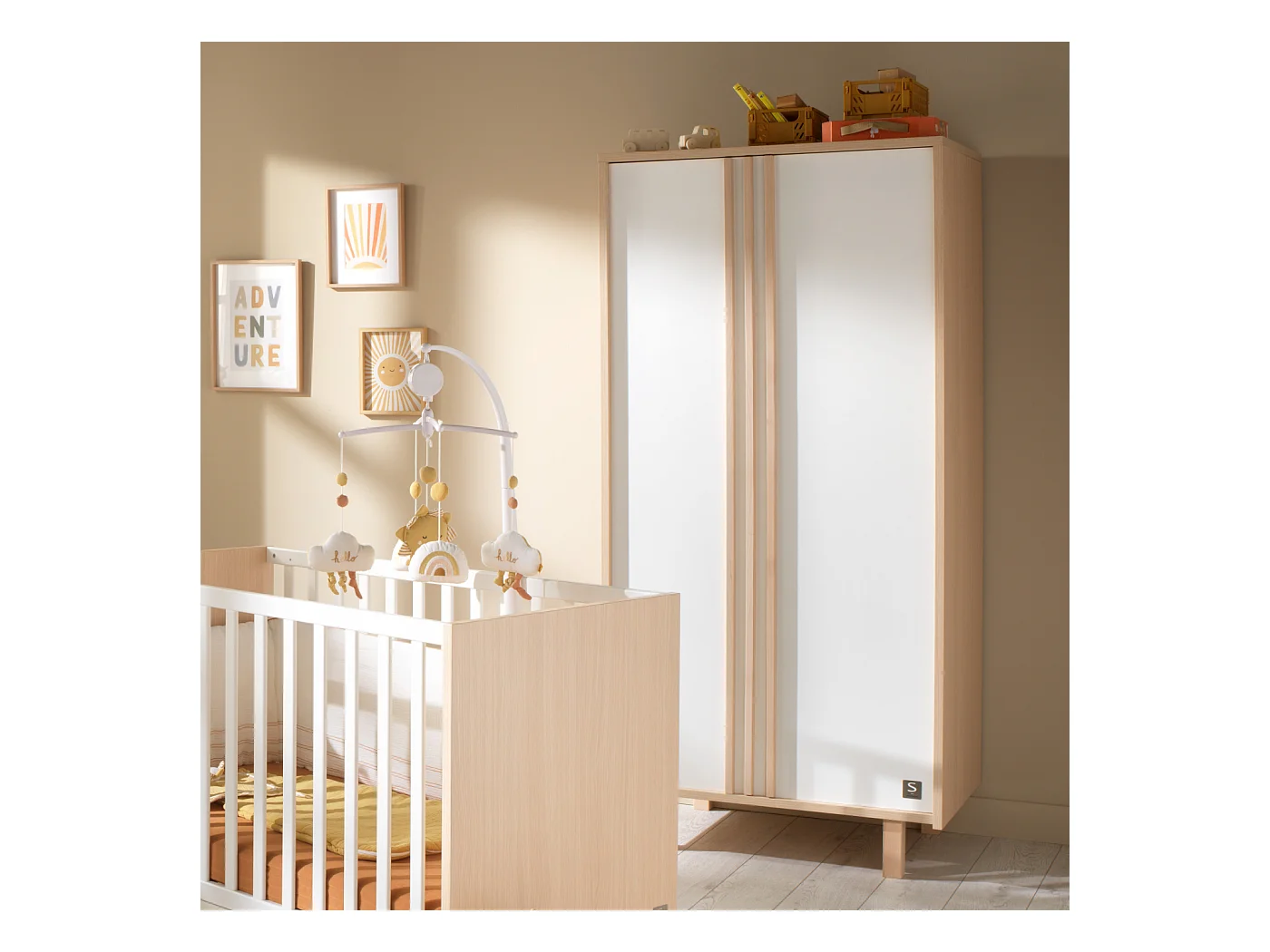 Armoire 2 portes en décor chêne velours et blanc avec appliques en bois NATURE - Sauthon