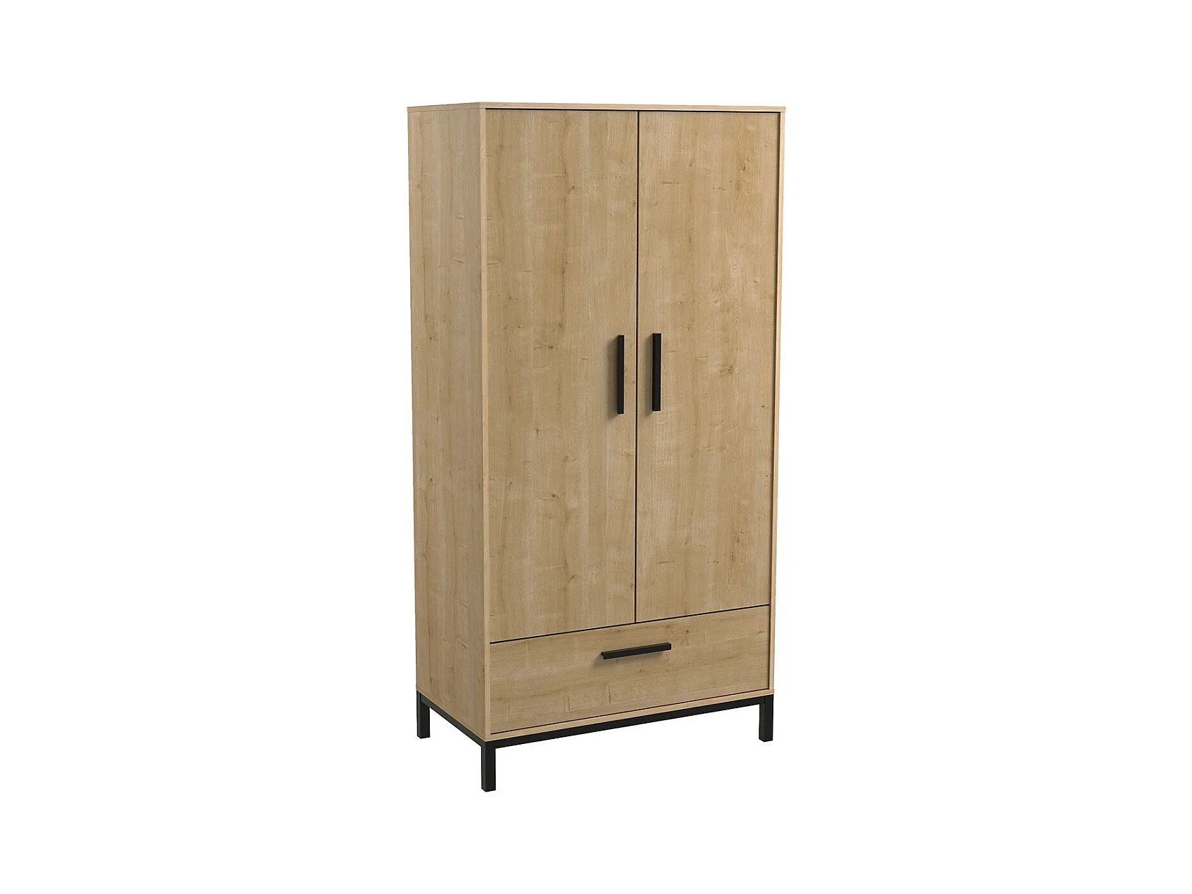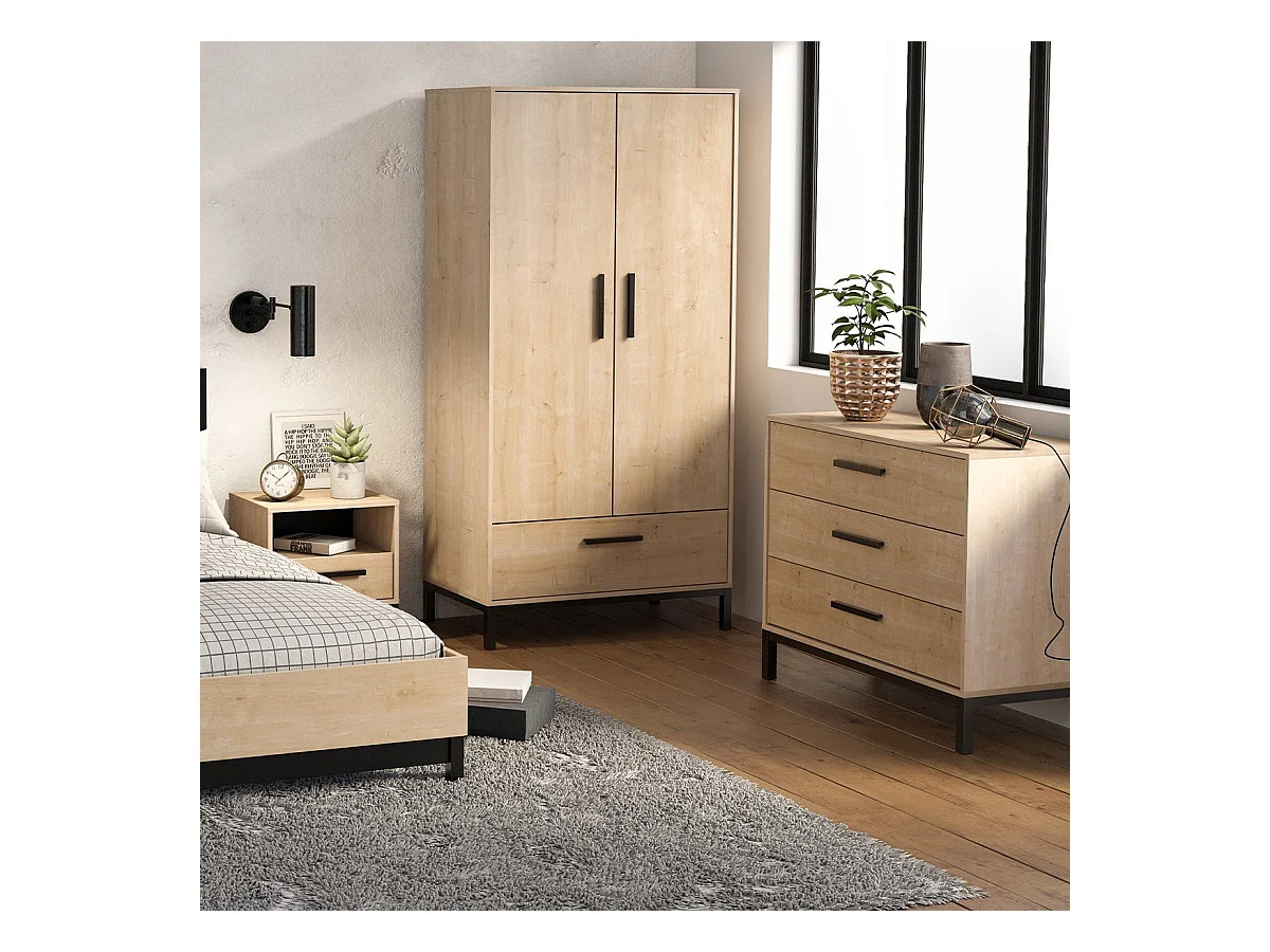 Armoire 2 portes et 1 tiroir décor chêne et noir mat H180 cm - CRAFT