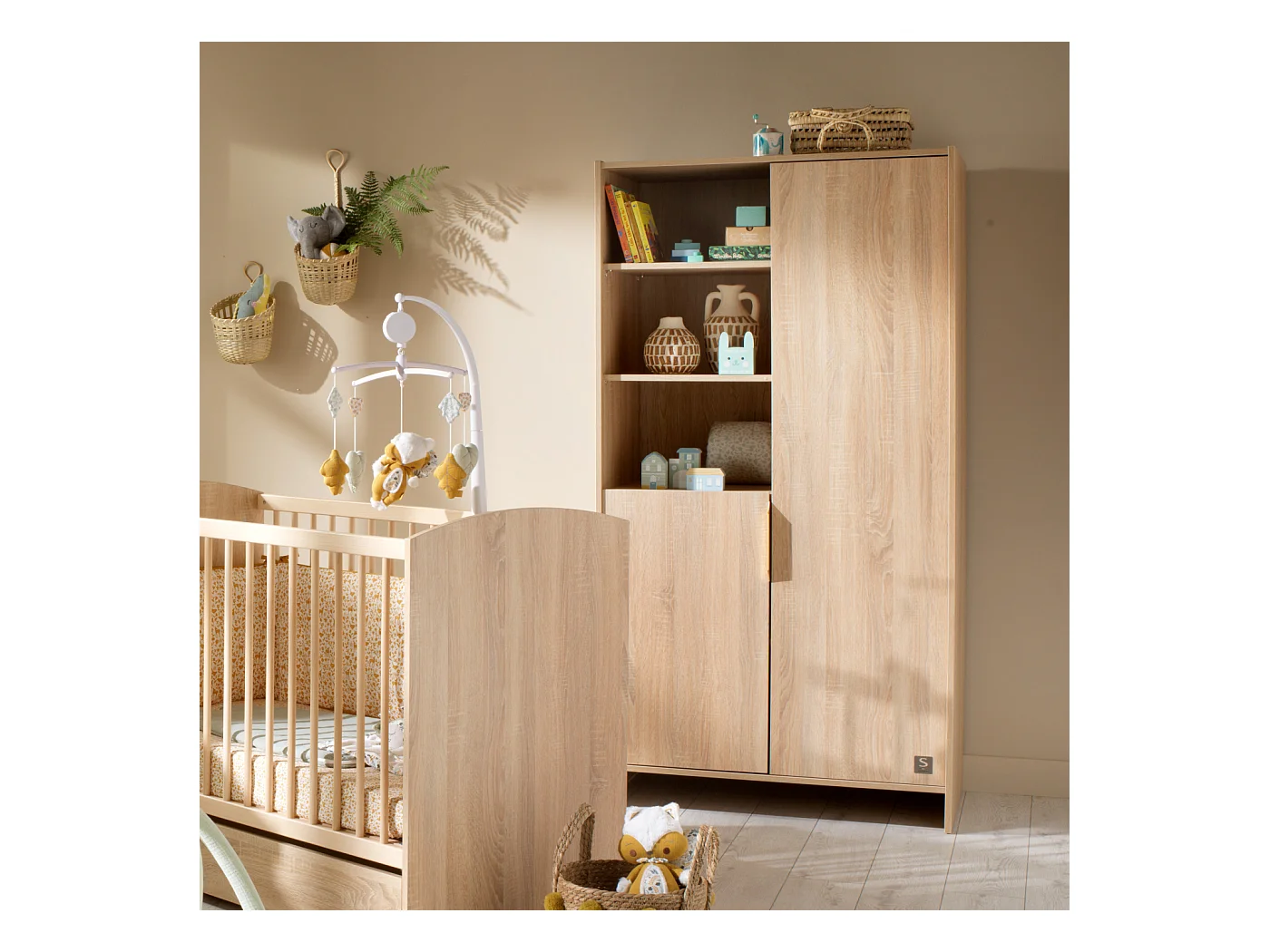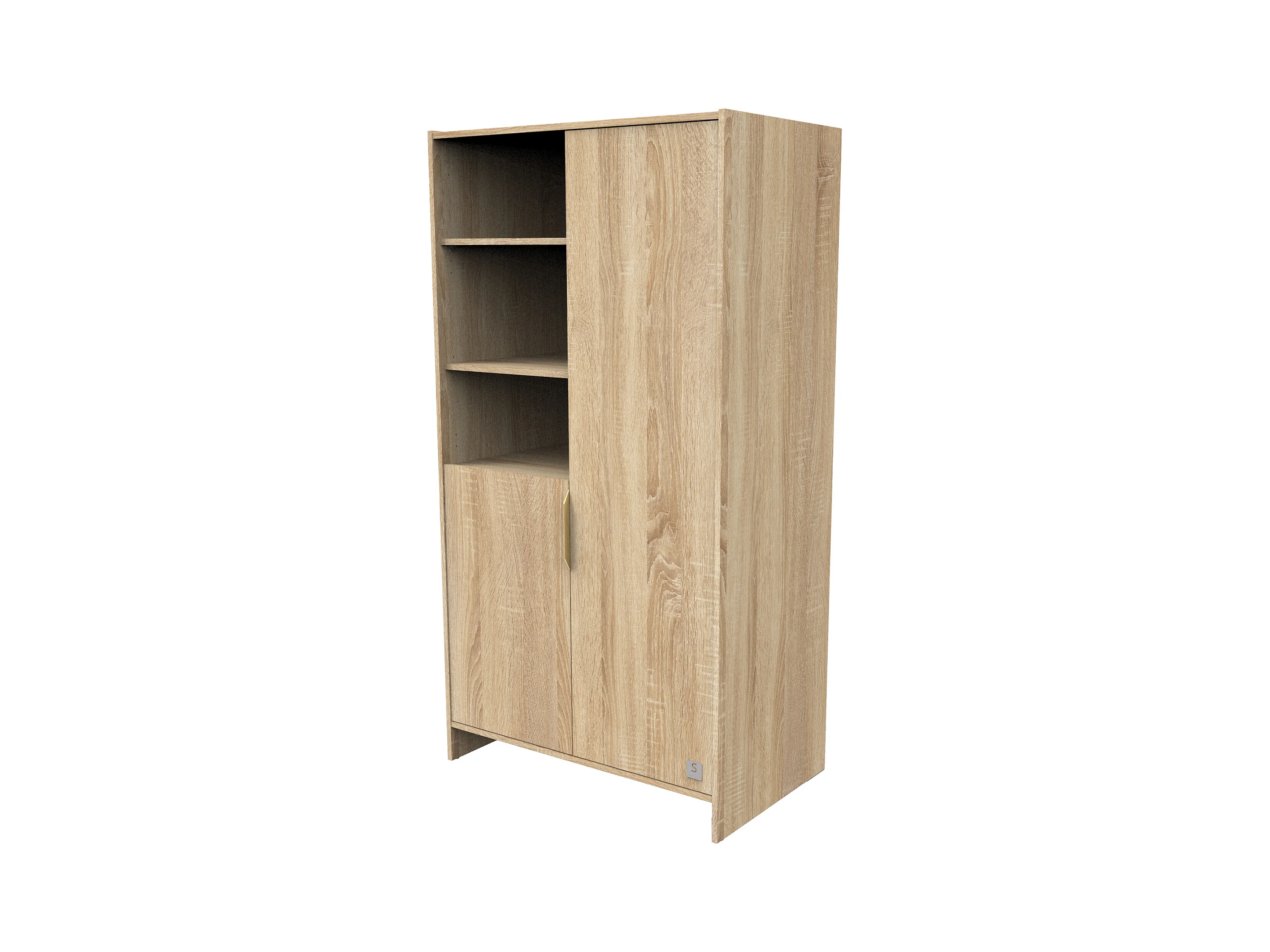 Armoire 2 portes et 3 niches avec poignées dorées décor chêne doré AZUR - Sauthon
