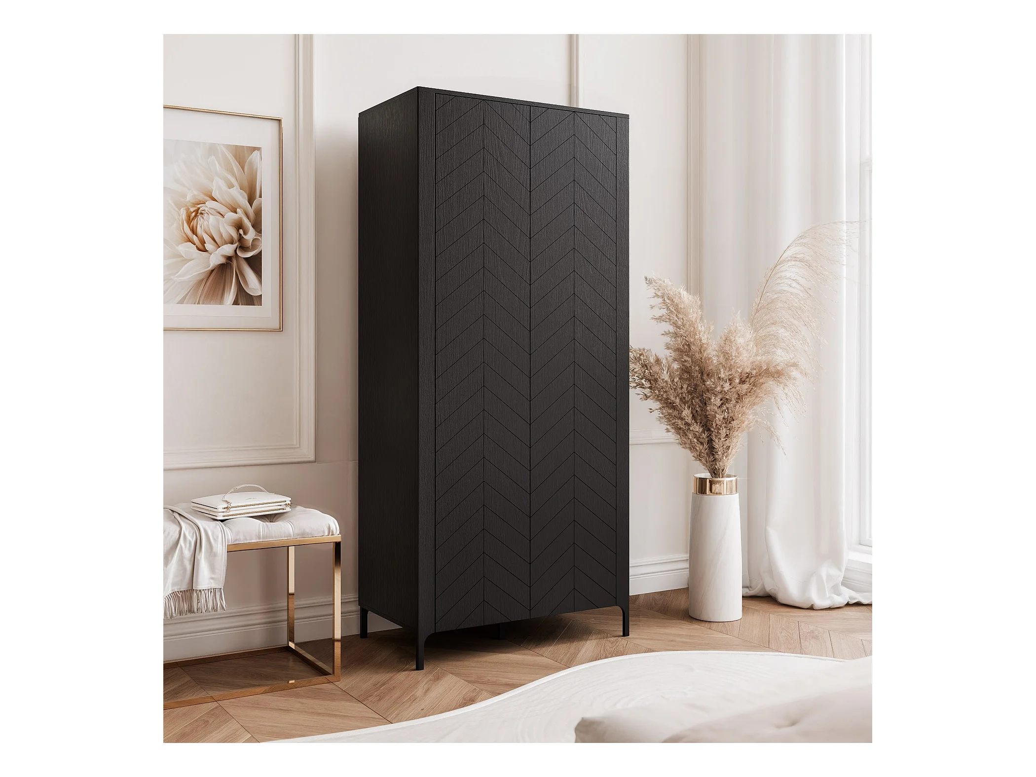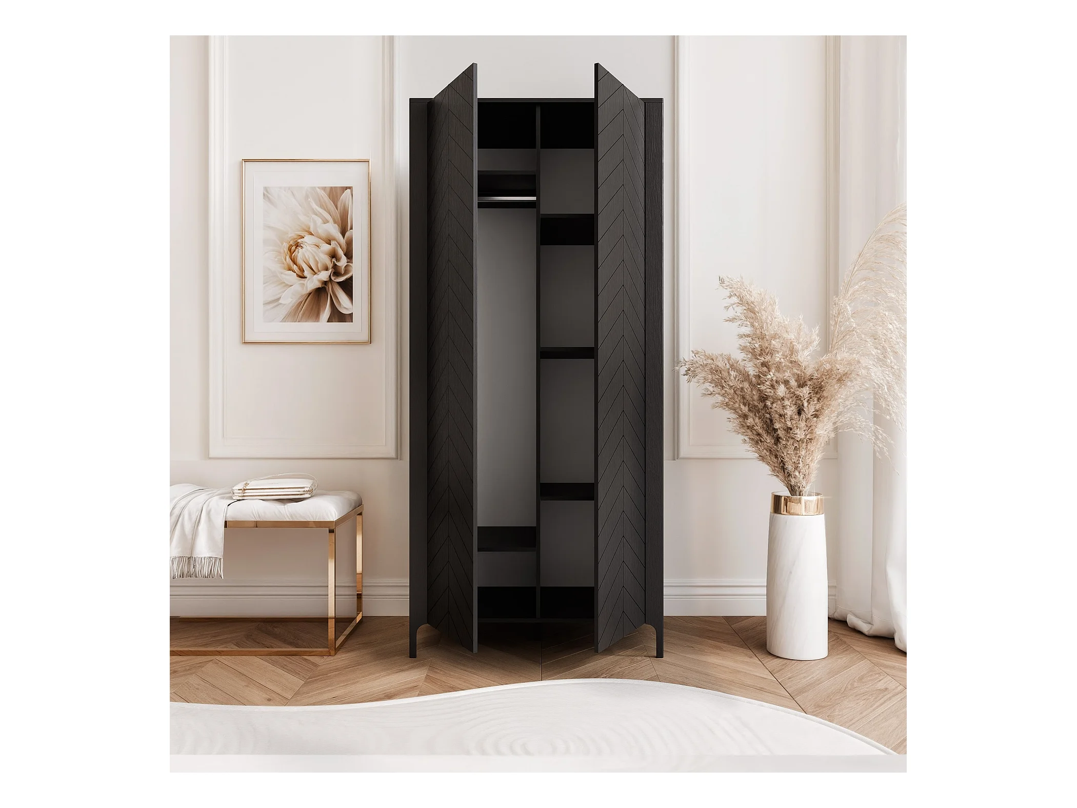 Armoire 2 portes et 6 étagères - 90 cm - Noir - LORIEN