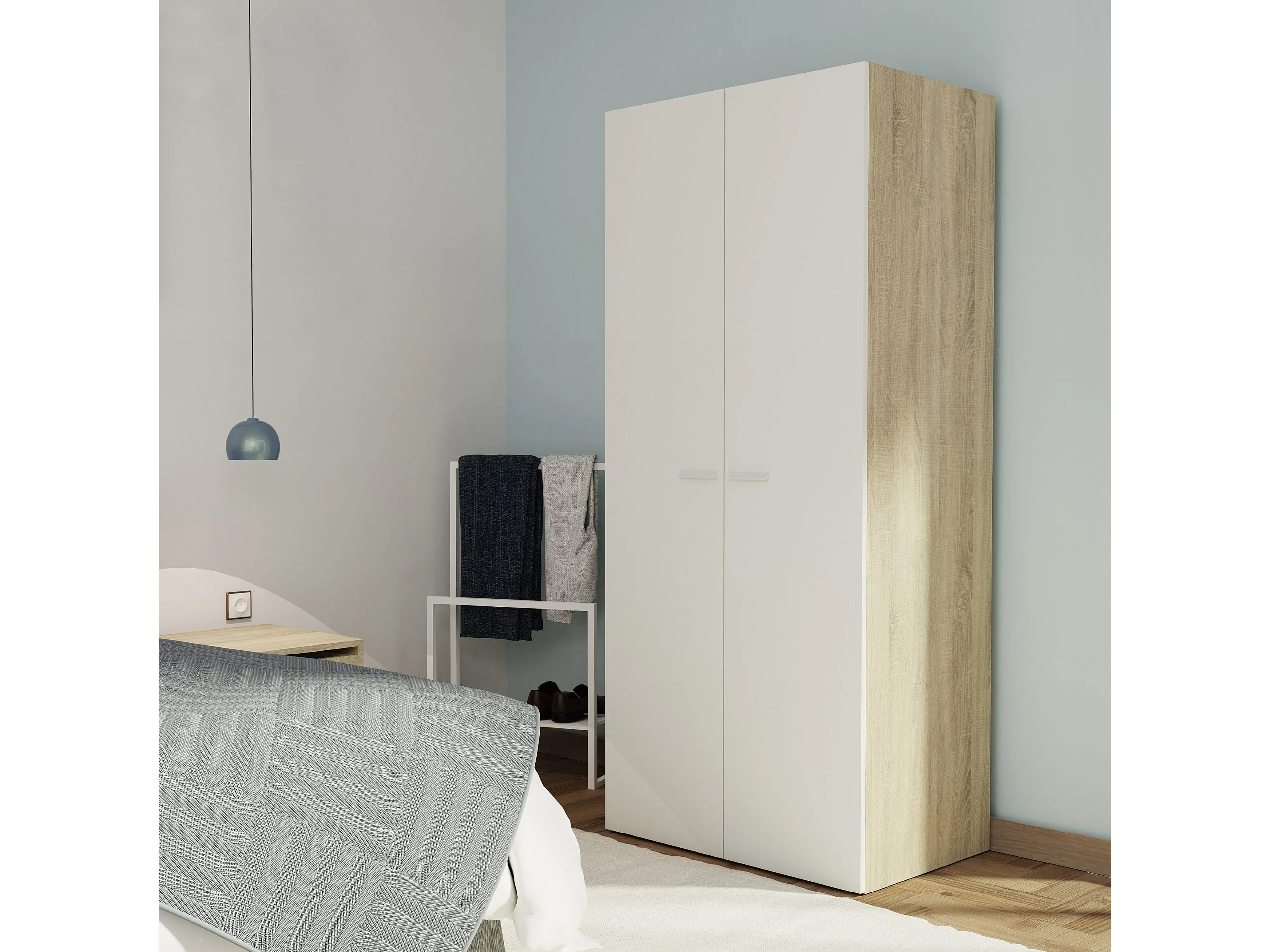 Armoire 2 Portes placard de rangement coloris Blanc/ Chêne Cambrien - Longueur 79 x Profondeur 52 x Hauteur 180 cm