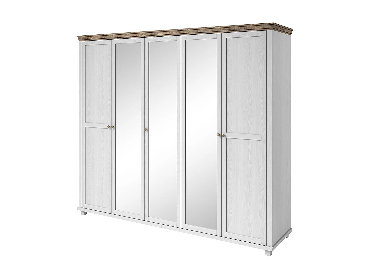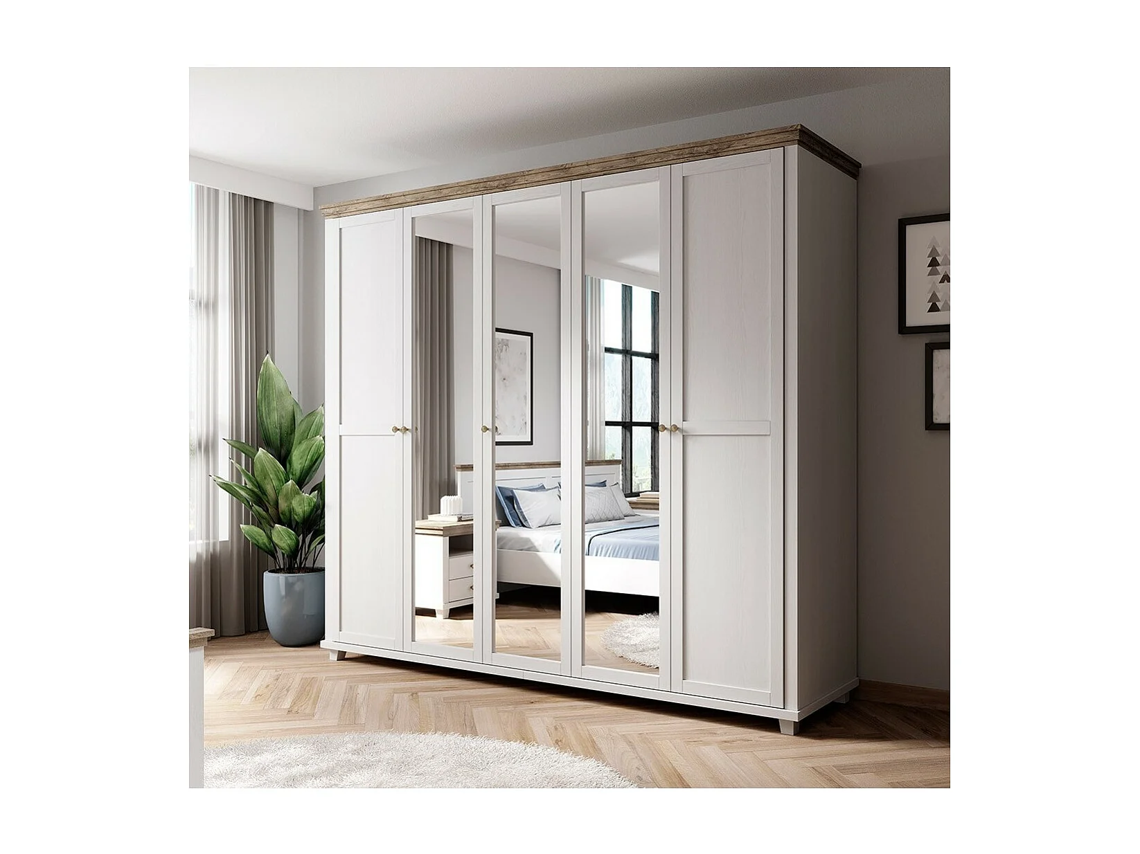 Armoire 250x220 avec 5 portes. Coloris blanc et chêne. Collection ASSIA