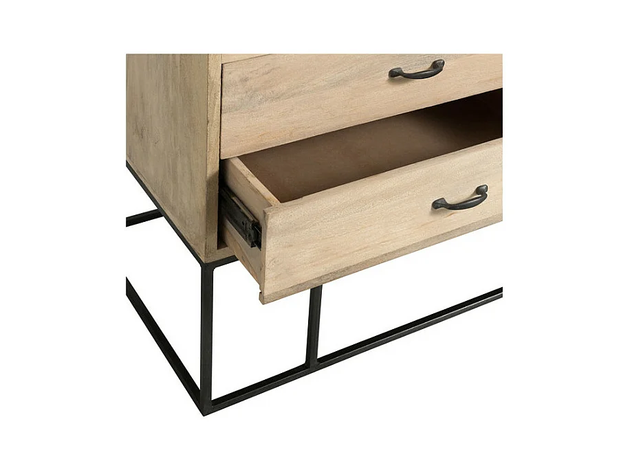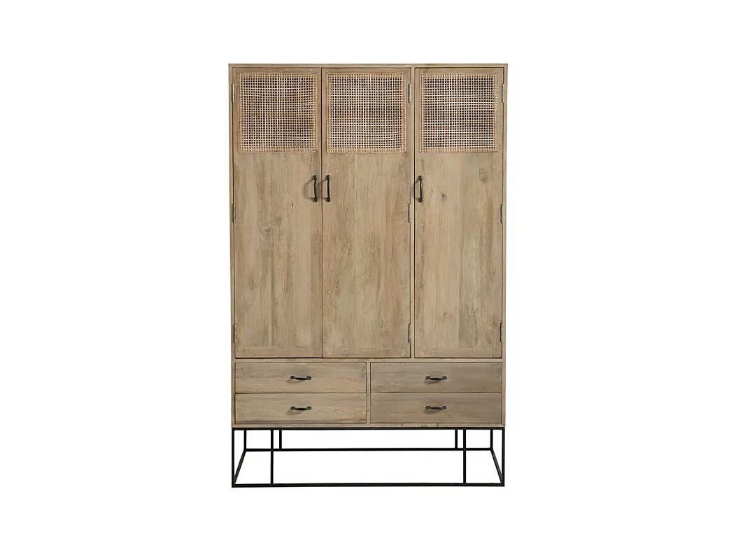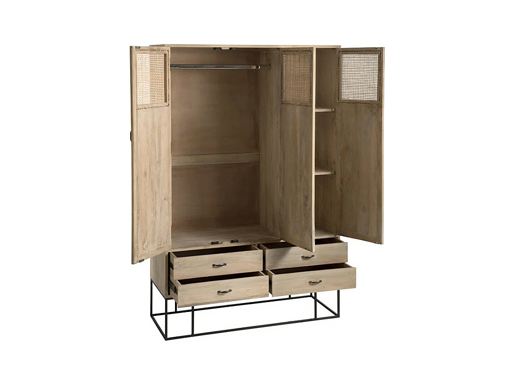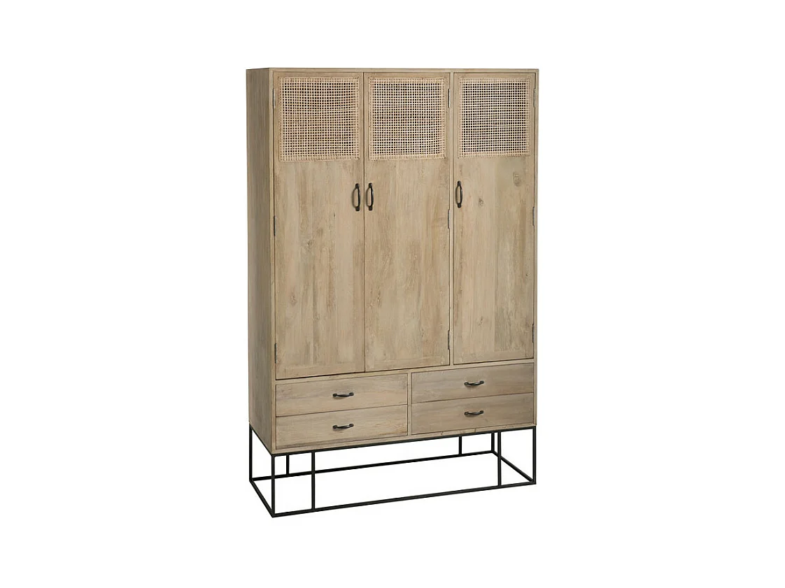 Armoire 3 portes 4 tiroirs en Rotin/Bois/Métal - DALIA