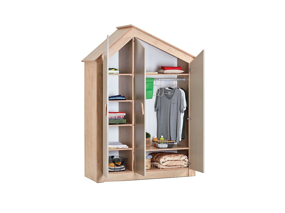 Armoire 3 portes aggloméré gris 207x150x58cm