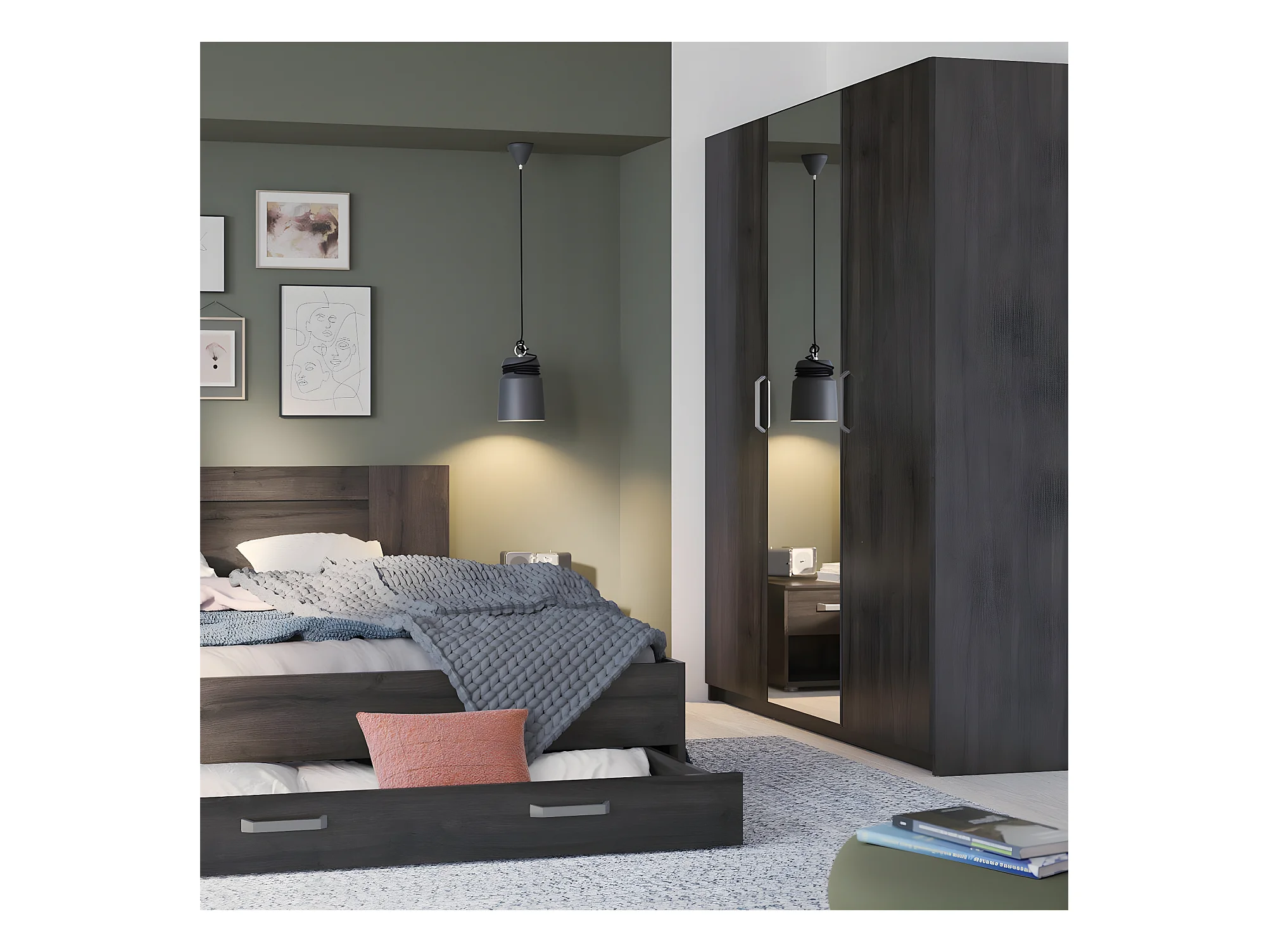 Armoire 3 Portes avec Miroir L133,5 x H191,5 cm - Richmond