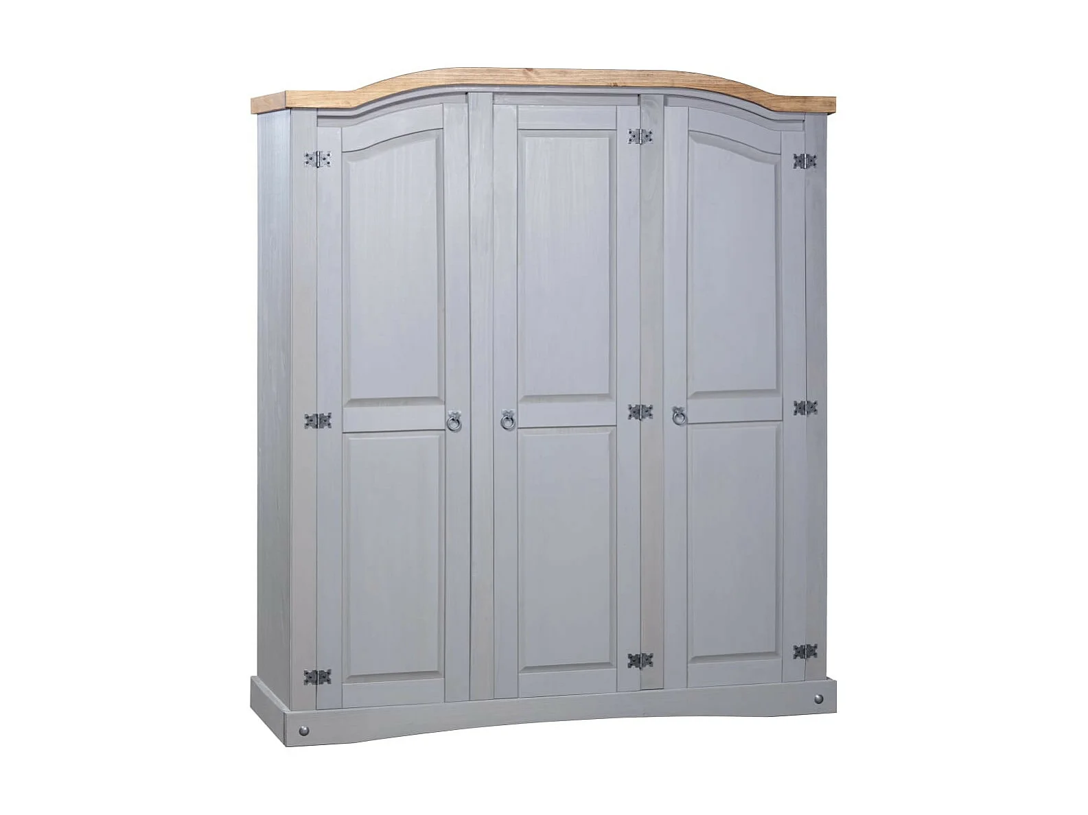 Armoire 3 portes pin massif gris et bois clair Harrie