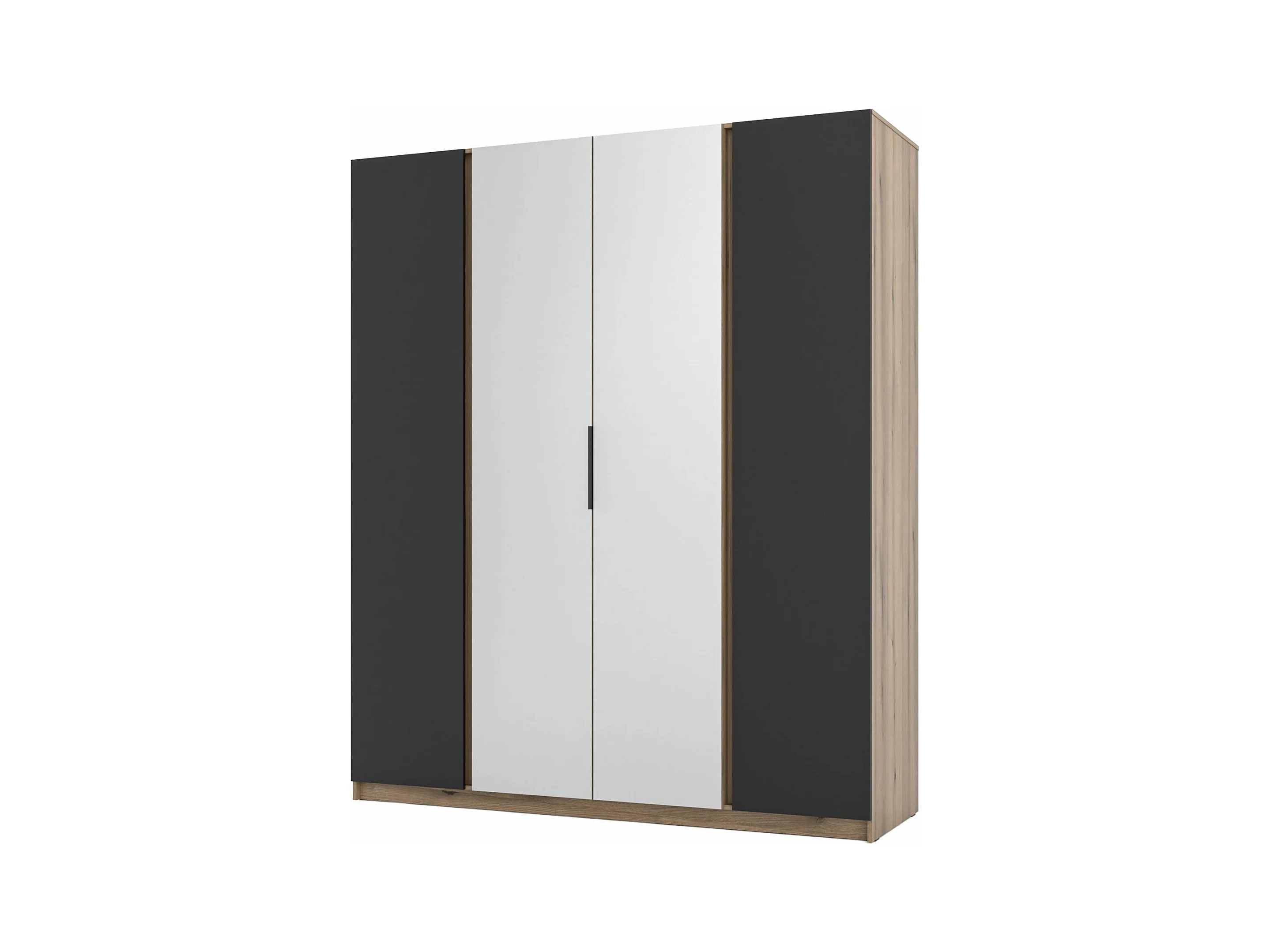 Armoire 4 portes avec miroir - 200 cm - noir / chêne evoke - KAJA