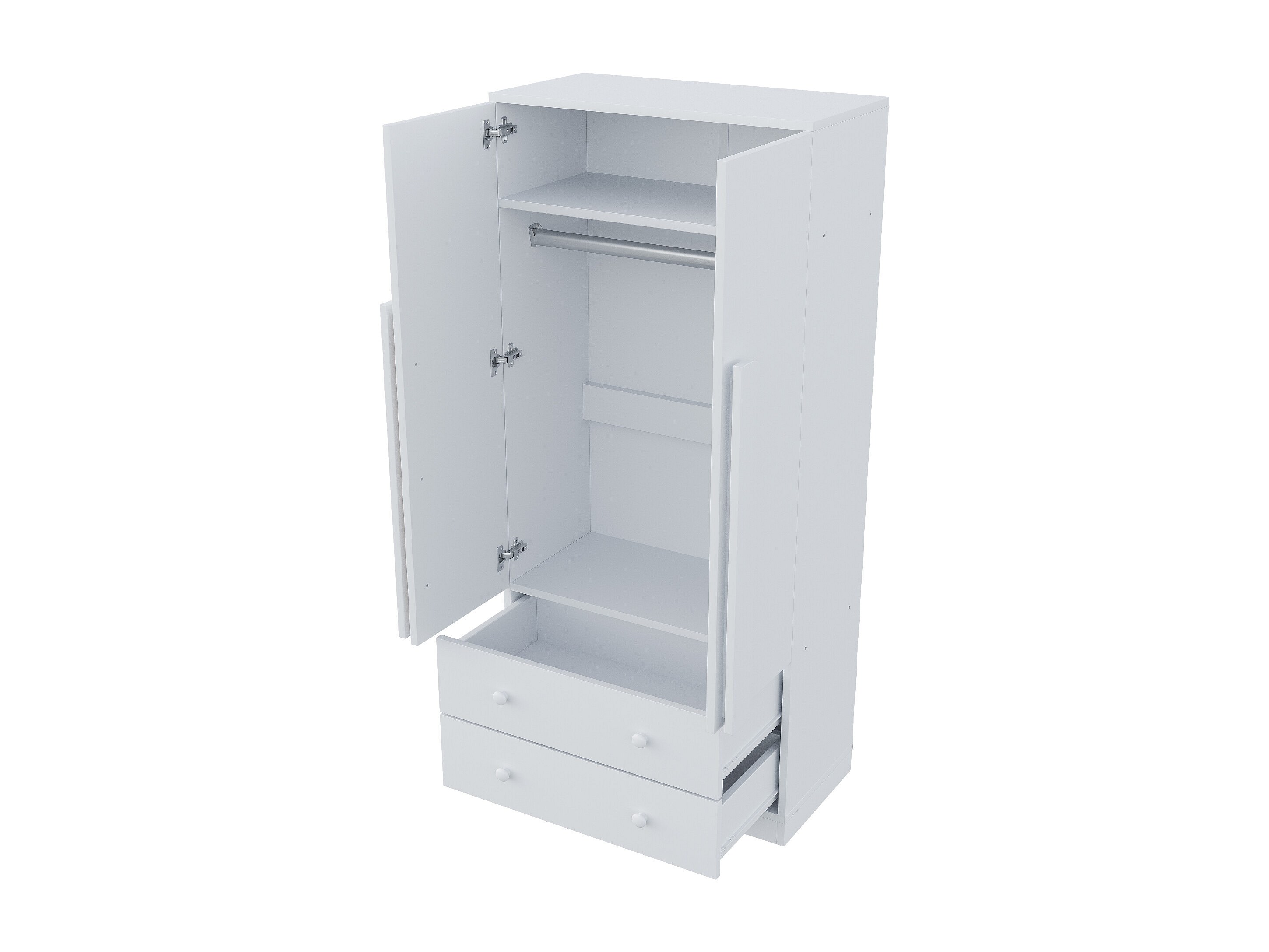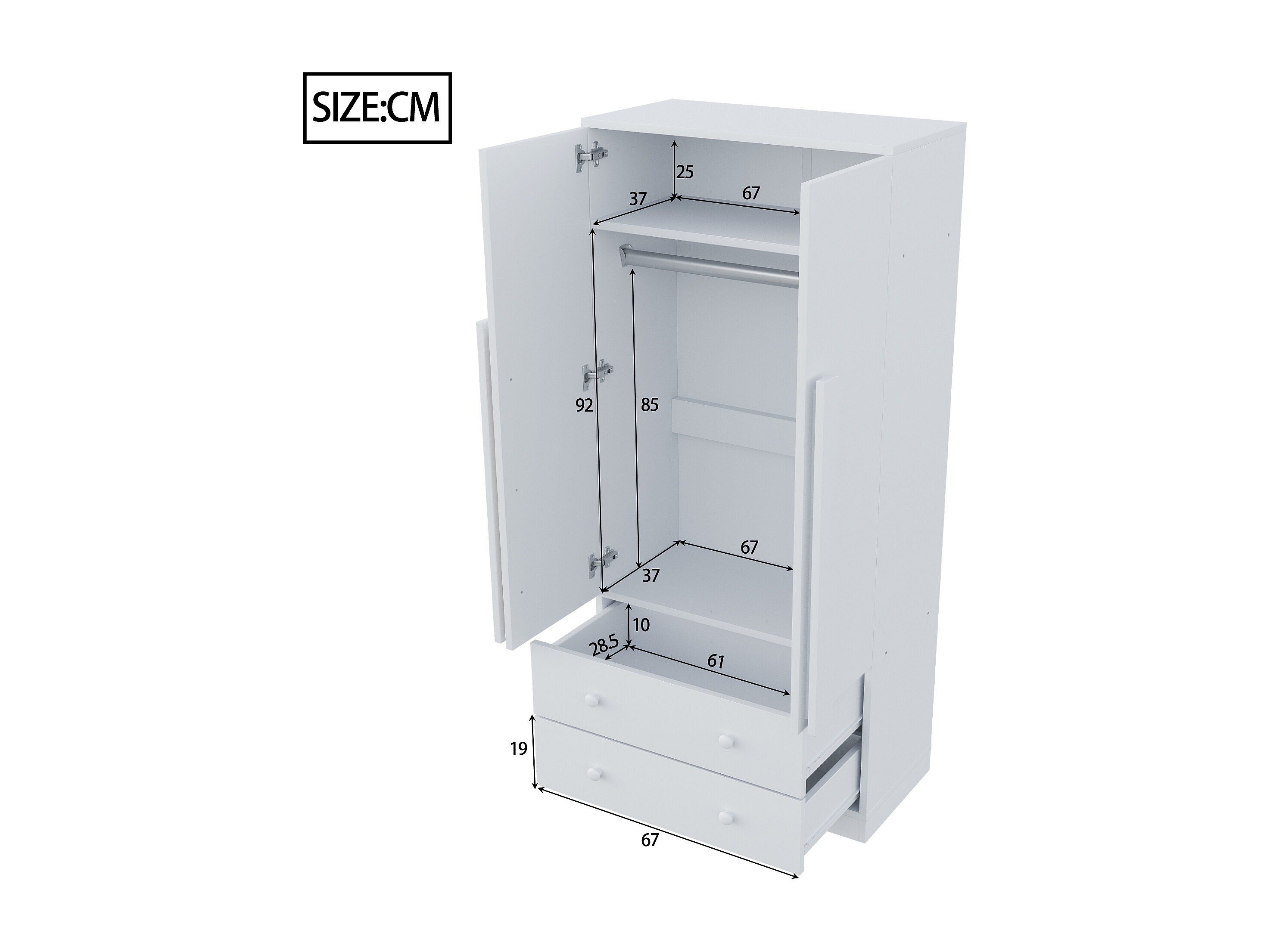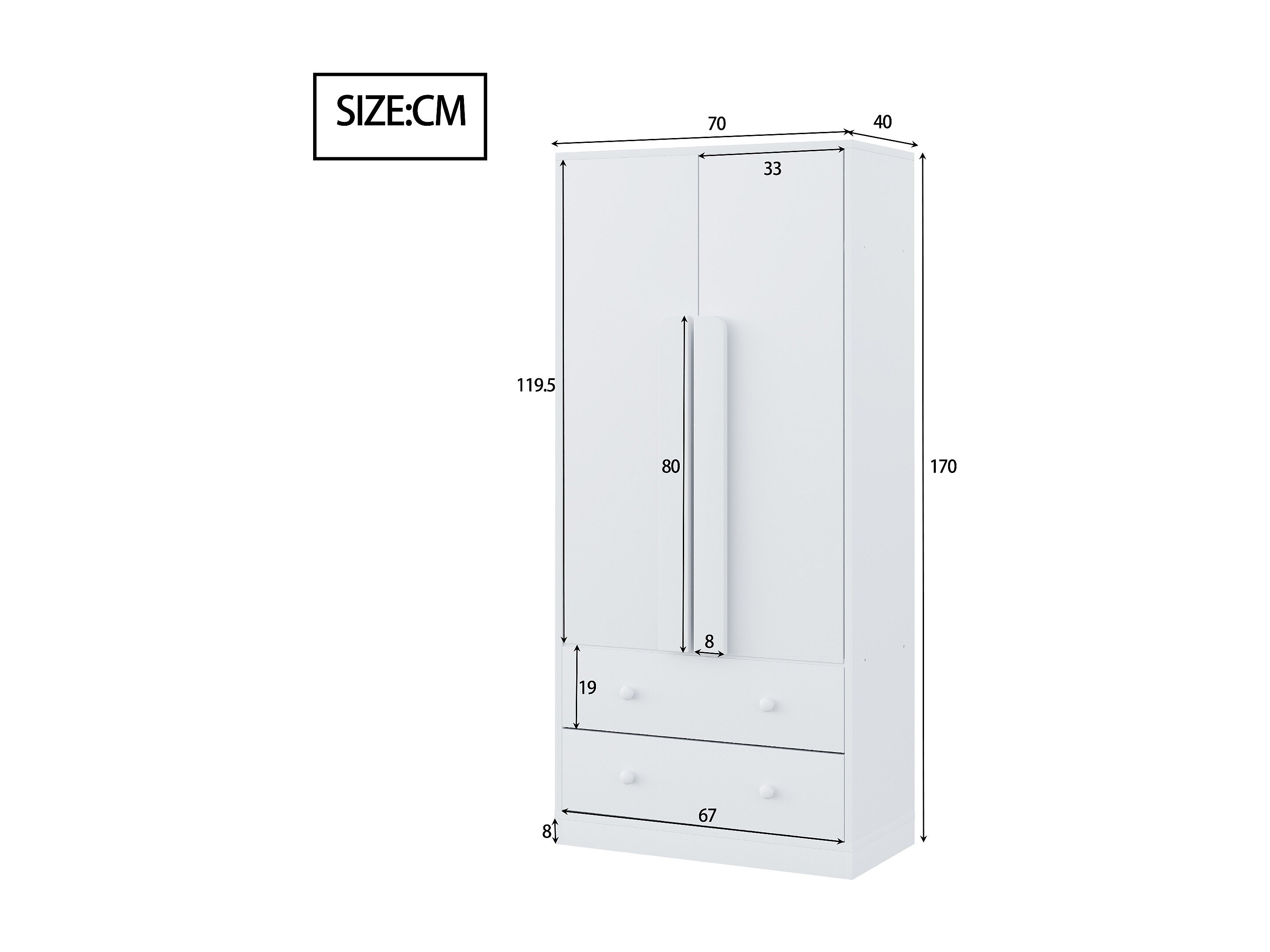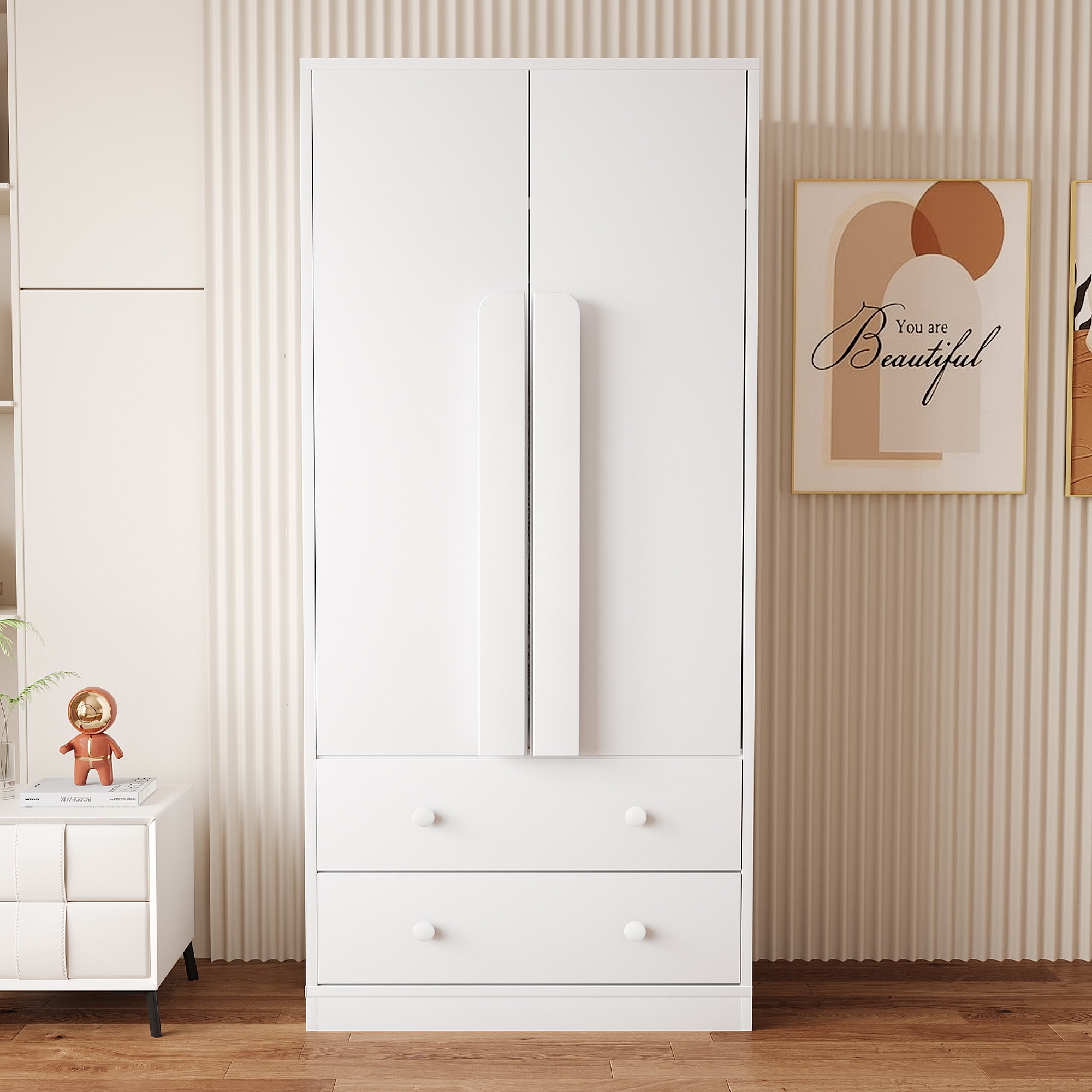 Armoire à 2 portes avec 2 tiroirs - 70 x 40 x 170 cm - bois + contreplaqué + MDF + métal - blanc